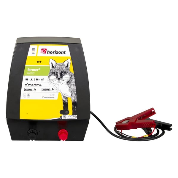 Die Dualgeräte farmer® AN15 und AN25 sind als 12Volt-Akkugeräte ausgelegt. Das für die Verbindung an einen Akku notwendige Anschlusskabel ist fest am Gerät installiert, sodass jede Nassbatterie angeschlossen werden kann. Auf der Rückseite dieser Dualgeräte befindet sich eine zusätzliche Anschlussmöglichkeit für einen Netzadapter (als separates Zubehör erhältlich = Art.-Nr. 47PSU0008EU). Über diesen Netzadapter kann das Elektrozaungerät am 230Volt-Stromnetz betrieben werden. In Verbindung mit dem Netzadapter, Art.-Nr. 47PSU0008EU, und einem 12Volt-Akku (z.B. Artikel 14125) können die Dualgeräte auch im Standby-Betrieb arbeiten. D.h. sobald die 230Volt-Netzversorgung ausfällt, wird das Gerät automatisch über den angeschlossenen 12V-Akku betrieben. Kombigerät, 2,5J Input, 2,0J max. Output Für Zäune bis 15km ohne Bewuchs und 1,7km mit starkem Bewuchs Stromsparschaltung Kompakte Allroundgeräte für den vielfältigen Einsatz im kleinen Gehäuse Die Ausgangsleistung steht über einen sehr weiten Widerstandsbereich zur Verfügung. Daraus ergibt sich der universelle Einsatzbereich Hohe Spannungswerte sichern eine hohe Hütewirkung mittels der eingesetzten Energie Im Lieferumfang enthalten: Zaun- und Erdanschlusskabel mit verstärkter Kunststoffummantelung Garantieverlängerung für horizont Weidezaungeräte - Jetzt registrieren! Nutzen Sie die Chance und verlängern Sie die Garantie Ihres Weidezaungeräts um 1 Jahr! https://agrar.horizont.com/cms/de/service/garantieverlaengerung.html Zusätzliche Produktinformationen Bauarten und Bauteile Duo Anschluss Baureihen Horizont farmer N Strom zufuhr Netz- / Akku