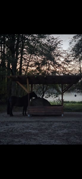 Stall befindet sich direkt im Wald in Zühlsdorf - zu erreichen mit der Regio oder dem Bus 806. Nette Stalltruppe, kein Gezicke! Wir bieten Ihnen einen artgerechten und komfortablen Einstellplatz in Selbstversorgung für Ihr Pferd in einer natürlichen und gepflegten Umgebung. Die Herde besteht aus 2 Stuten und 4 Wallachen im Alter von 6 bis 21 Jahren ist alles vertreten. Pferde werden bei uns in einer harmonischen, derzeit sechsköpfigen Herde auf einer großzügigen Koppel/Paddocktrail von 1 Hektar Größe gehalten. Ein Schubberstamm, Salzlecksteinhecke, einen Trail mit vielen knabberästen, Bäume sowie eine Totholzhecke sorgen für keine Langeweile auf der Koppel. Die Koppel wird stets sehr sauber gehalten, und Ihre Pferde haben Zugang zu 24 Stunden frischem Heu (24/7) und Wasser. Zudem stellen wir qualitativ hochwertiges Heu zur Verfügung, das über engmaschige Heunetze an mindestens zwei Futterplätzen mit befestigtem Boden verabreicht wird. Für den Sommer planen wir ein Roundpen, das zusätzlich Platz für Training und Bewegung bietet. Unsere Weide mit 2 Hektar, steht Ihren Pferden von April/Mai bis Ende Oktober (24/7) zur Verfügung, und zwei Unterstände sorgen dafür, dass Ihre Tiere jederzeit Schutz vor Witterung finden. Ein großer, befestigter und überdachter Putzplatz mit Licht steht Ihnen zur Verfügung, damit Sie Ihr Pferd bequem pflegen können. Trensen- und Sattelhalter sowie Anbinder stehen zur Verfügung. Neben der Futterkammer, die von unseren 3 süßen Hofkatzen (wir sind Mäusefei) bewacht wird, bieten wir eine Sattelkammer für Ihre Ausrüstung sowie einen beheizbaren Bauwagen und eine Öko-Toilette für Ihre zusätzlichen Bedürfnisse. Pro Pferd ist einmal wöchentlich ein Stalldienst zu leisten, der für das Wohlbefinden Ihres Tieres sorgt. Ein sauberer PaddockTrail ist wichtig ind das ordentlicheAbäppeln wird vorausgesetzt ! Hunde dürfen nur nach vorheriger Absprache mitgebracht werden (wegen der Katzen, Kinder und anderen Hunden) Unsere zwei Reitplätze, einer davon beleuchtet, Hütchen & Stangen sowie Cavalettis stehen fürs Training zur Verfügung. Ausritte, und das wunderschöne, weitläufige Ausreitgelände direkt am Hof lädt zu stundenlangen Ritten oder Spaziergängen in der Natur ein. Ihre Pferde genießen ein artgerechtes Zuhause mit viel Platz und bester Versorgung. Wir suchen jemanden, der sich aktiv um sein Pferd kümmert und nicht sein Pferd abstellt und alle 2 Wochen mal vorbeikommt ! Die kosten belaufen sich auf ca 280€ monatlich je nachdem wieviel Heu verbraucht wird, alles weitere gerne persönlich. Einfach vorbeikommen und anschauen! Wir freuen uns auf euch!