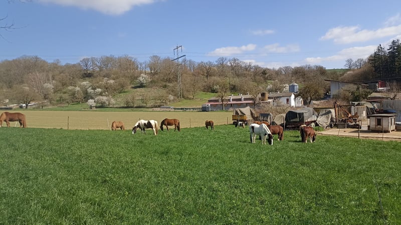 Bei uns sind die Pferde/Ponies auf einem ganzjährigen Auslauf und saisonal auf den Weiden. Außerdem steht ihnen eine Leckstein-Bar und ein Sand-Liegeplatz zur Verfügung. Anweiden wird von uns übernommen und im Herdenverband durchgeführt. Wir haben einen Reitplatz mit Licht, einen Putzplatz und auch eine Pferdedusche. Das Sattelzubehör ist in einer abschließbaren Sattelkammer untergebracht. Eine Impfpflicht gibt es nicht. Das Ausreitgelände ist direkt angrenzend. Unsere Anlage wird von uns täglich gereinigt, sowie auch die Weiden abgeäppelt. Der Preis ist Vollpension.