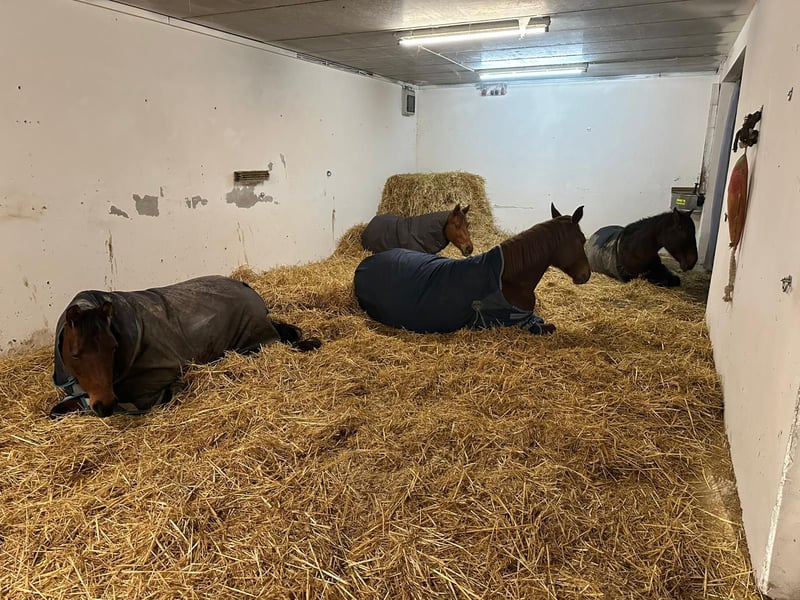 Wir sind auf der Suche nach einem vierten Pferd oder Pony für unsere Stallgemeinschaft. Unsere Pferde (2 Pferde und ein Pony) sind im Offenstall mit Teil-Selbstversorgung untergebracht ist. Es ist eine Reithalle, eine Sattelkammer, eine Putzhalle sowie eine Sommerweide vorhanden. Der Stall ist sehr schön, direkt am Wald gelegen. Die Pferde bekommen 24/7 Heu über eine Rundballenraufe und es ist eine beheizte Tränke vorhanden. Der Paddock vor dem Stall ist mit sandgefüllten Paddockmatten ausgelegt. Die oben erwähnte Teil-Selbstversorgung bedeutet: Heu und Stroh sind am Hof vorhanden. Jeder Einstaller muss aber an etwa 7 Tagen pro Monat pro Pferd (bei 4 Einstallern) die üblichen Stallarbeiten erledigen: den Stall misten, Paddock abäppeln und 1x täglich Kraftfutter/Mineralfutter füttern. Falls die Pferde im Sommer nicht Tag und Nacht auf der Weide bleiben können sollten (wg. Hitze oder Bremsen), müssen wir das Rein- und Rausbringen untereinander organisieren. In der Regel erledigt derjenige es, der auch Stalldienst hat. Heu kann auch auf der Weide über eine Raufe zugefüttert werden, Wasser auf der Weide wird durch den Stallbesitzer gestellt. Bei weiteren Fragen einfach anrufen. Wir freuen uns über eure Kontaktaufnahme. Monatlicher Unkostenbeitrag: 235 € inklusive Raufutter, ohne Kraft- und Mineralfutter.