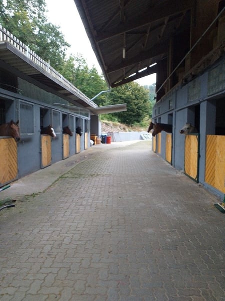 Der Preis bezieht sich auf Vollpension. Es wird gemistet und Heu gefüttert, Die Boxenpferde werden morgens auf die Paddockanlage und abends wieder reingebracht.