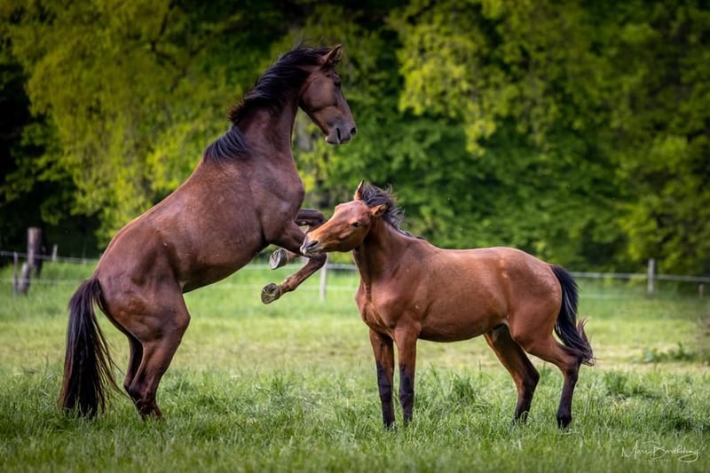 Tenemos una pequeña granja de cría y podemos llevar unos cuantos destetados cada año para su cría. Por supuesto, nos ocupamos de la desparasitación, las vacunas, el herrador y otras cosas durante todo el año. En verano los caballos están en nuestros amplios paddocks 24/7, en invierno en pequeños grupos en el establo suelto con visitas diarias a nuestros paddocks de arena. Las consultas son bienvenidas a través de WhatsApp a 0151-70519306