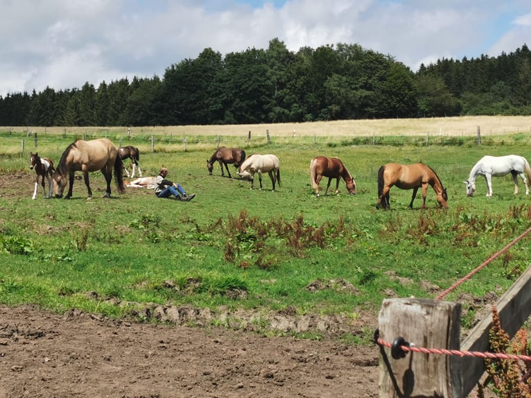 We offer breeding places on large meadows in herds Mares and geldings separated, we are organic farm, there is only organic feed. We have almost no riding arena but a ROUND PEN ,,,but the most beautiful riding area you can imagine, here in the VULKANEIFEL Birgit B0ßmann 01608038660 for all further questions !
