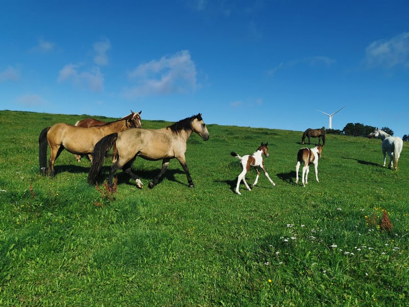 Wij bieden opfokplaatsen aan op grote weilanden in groepshuisvesting. Merries en ruinen gescheiden, wij zijn een biologische onderneming, er is alleen biologisch voer. We hebben bijna geen rijbaan, maar wel een ROUND PEN, en daarvoor het mooiste ruitergebied dat je je kunt voorstellen, hier in de VULKANEIFEL. Birgit B0ßmann 01608038660 voor alle verdere vragen!
