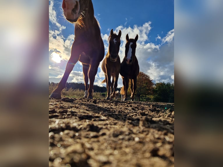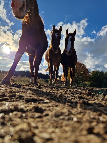 Aufzuchtsplatz für Stuten in gemischter Heerde im Offenstall oder für Junghengste im Laufstall und grosser Koppel. Absetzer - 330,-€ Jährling- 350,-€ 2 Jährig 380,-€ 3 Jährig 490,-€