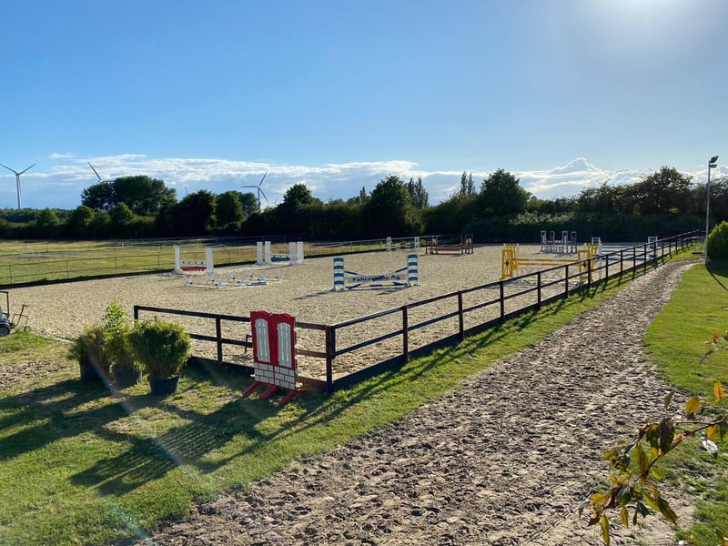 Ofrecemos boxes de ventana y de paddock disponibles en una instalación cuidada y modernizada, con condiciones de entrenamiento óptimas y excelente conexión de transporte. Ofrecemos: Hasta 4 veces al día heno 2 veces al día pienso (muesli/avena) Paja o virutas Espacio de lavado Solárium Pastoreo diario (temporada de verano)/paddock (temporada de invierno) Servicio de sacar/traer opcional Servicio de máquina de conducción Nuestras instalaciones: Pista cubierta 43x23m Pista de equitación/salto 30x60m Círculo de lunging 20m Pista de lunging Máquina de conducción Clases de doma y salto en el lugar Conceptos para la formación de caballos y jinetes, así como apoyo en competiciones Si tiene preguntas, no dude en ponerse en contacto con nosotros.
