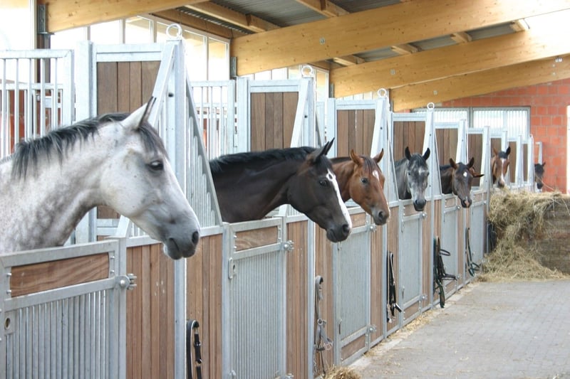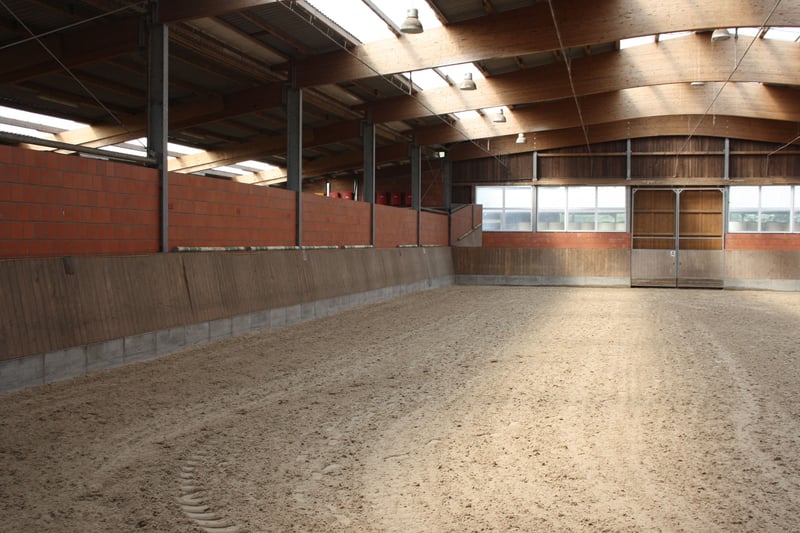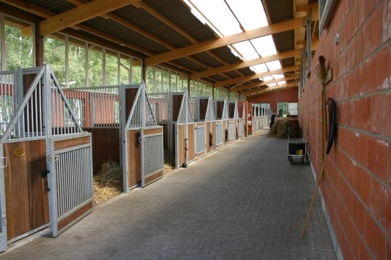 Moderne lichte, luchtige paddockboxen en stallen op een prachtige fokkerij.