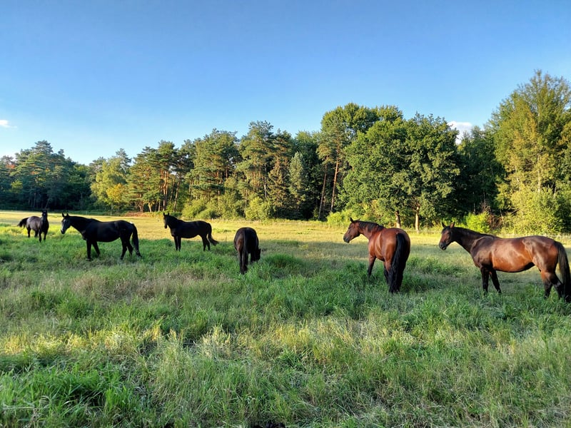 Na naszej zadbanej i przestronnej stadninie oferujemy duże boksy z otwartym przodem z bezpośrednim dostępem do paddocku oraz stajnię dla 6-15 koni dla ambitnych jeźdźców ujeżdżeniowych. Oferujemy 2 hale do jazdy, duży plac do jazdy na świeżym powietrzu, ogrzewane pomieszczenia na sprzęt jeździecki, myjnię, solarium, lonżownik, pokój dla jeźdźców, dużo pastwisk oraz utwardzone paddocki z żłobami na siano. Osobiste spotkanie jest mile widziane.