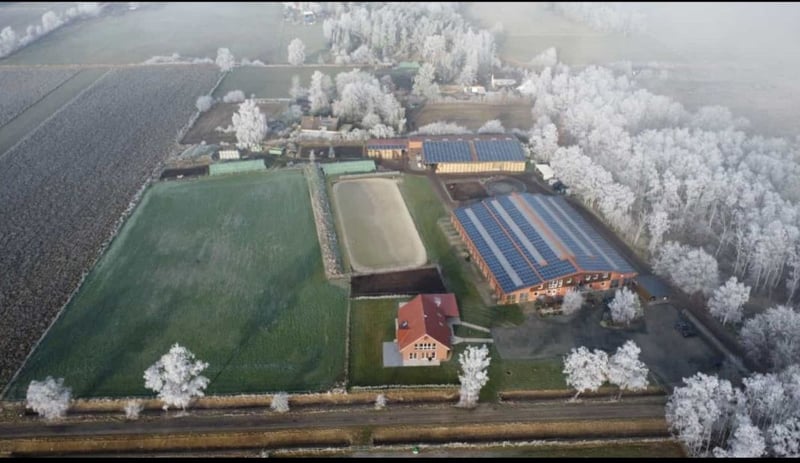 En nuestra cuidada y amplia instalación de cría, ofrecemos grandes boxes abiertos en la parte delantera con acceso directo al paddock, así como un edificio de establos para 6-15 caballos para jinetes de doma ambiciosos. Ofrecemos 2 pistas cubiertas, un gran picadero al aire libre, cuartos de silla calefaccionados, un box de lavado, solárium, círculo de lunging, sala de descanso para jinetes, mucha superficie de pasto, paddocks pavimentados con comederos de heno. Se desea un encuentro personal.
