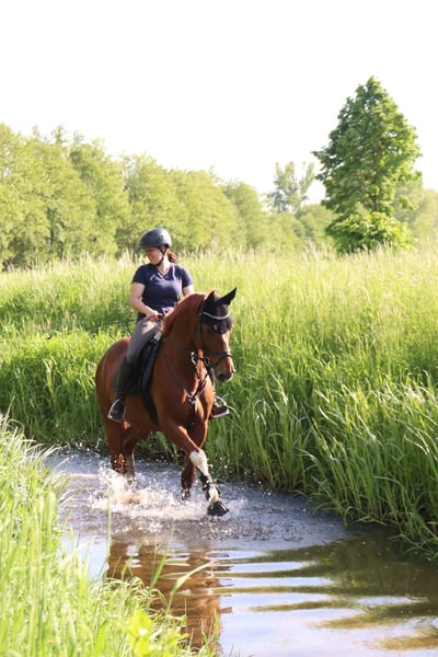 Wij bieden longeerplaatsen aan op onze kleine, familiale boerderij. Ik ben Geraldine, 29 jaar oud, gediplomeerd paardenhouder in de richtingen Huisvesting en Dienstverlening (Hauptgestüt Graditz) en Klassieke Ruiteropleiding (Brandenburgs Haupt- en Landgestüt Neustadt (Dosse)). Na mijn opleiding heb ik tien jaar gewerkt bij het Haupt- en Landgestüt Neustadt (Dosse). In die tijd heb ik uitgebreide praktische ervaring opgedaan in de fokkerij en voorbereiding van hengsten voor keuringen, evenals van merries voor prestatieproeven en staatspremieshows. Mijn specialisatie ligt in de dressuur, maar ik hecht veel waarde aan een veelzijdige opleiding: dressuurwerk, buitenritten, longeerwerk, stangenwerk en kleine sprongen maken daar vanzelfsprekend deel van uit. Elk paard wordt bij mij behandeld alsof het mijn eigen is – met geduld, duidelijkheid en een vertrouwensvolle basis tussen paard en ruiter. Of het nu een recreatie- of sportpaard is, ik werk volgens klassieke, traditionele principes. Ook pony’s (vanaf 1,40 m) zijn van harte welkom. Onze boerderij biedt: - Reitbaan van 25x45 m - Grote stallen met voerroosters, zodat 24/7 hooi beschikbaar is - Prachtig buitenrijgebied - Ruime uitlopen en weiden Ik beantwoord graag verdere vragen en ik kijk ernaar uit om u en uw paard te leren kennen!