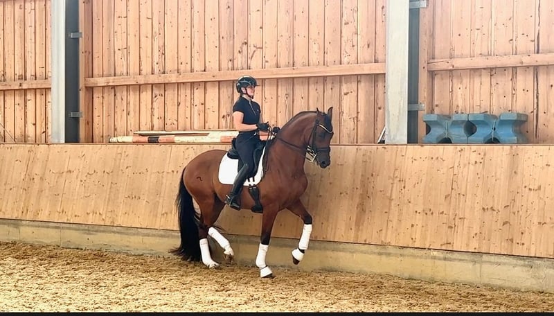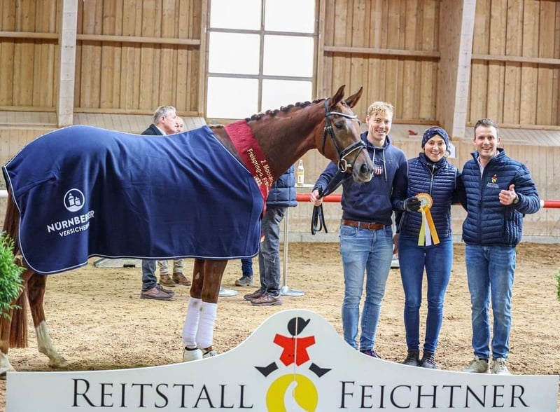 Professional Training – From Breaking In to Advanced Levels We offer qualified training for stallions, mares, and geldings – tailored, horse-friendly, and goal-oriented. Our concept combines solid training with appropriate care and optimal management – for a healthy, motivated, and willing partner. Training & Specializations Gentle training from breaking in to Grand Prix level Individual, horse-friendly training – adapted to age, temperament, and talent Competition presentation in consultation with the owner Preparation of stallions for licensing – professional presentation and targeted development Preparation of mares for performance tests and studbook registration Training with a long-term perspective: focus on rideability, suppleness, and carrying capacity Appropriate Care & Daily Exercise Large, modern individual stalls with plenty of light and fresh air for a healthy stable environment Daily turnout (weather-dependent), weatherproof paddocks in adverse conditions Regular exercise in the horse walker to promote muscle development and relaxation Free jumping to enhance athleticism, motivation, and variety Feeding & Care High-quality hay from our own production Individual feeding plans with premium concentrate and mineral feed Supplementary feeding based on training level, health condition, and needs Regular farrier service – individually shod or barefoot as needed Close collaboration with veterinarians and therapists possible Our Team Highly qualified staff with extensive experience in training and handling horses of various training levels Riders with competition experience up to advanced levels Horse-friendly, clear training philosophy with a long-term goal Our Philosophy: Quality over Quantity. Each horse is individually nurtured, not forced into a mold. Location: Gestüt Schorer - 86860 Weicht Contact: 0176-56960037
