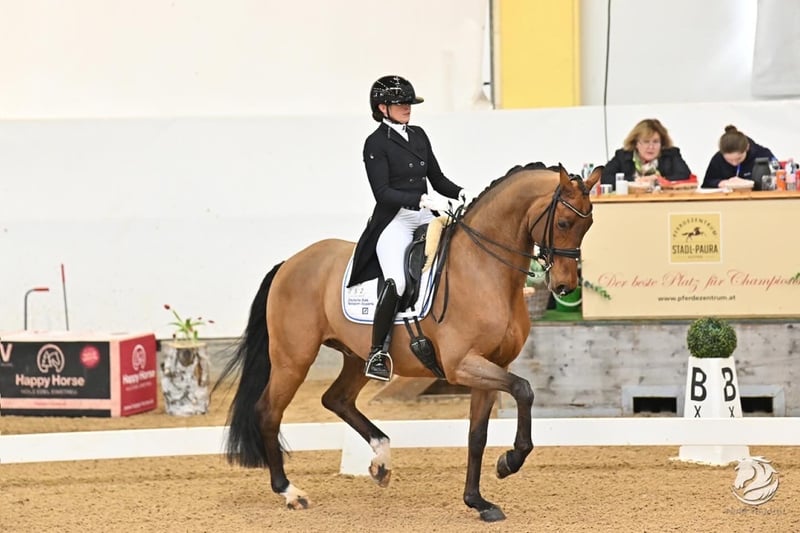 Entrenamiento profesional desde la doma hasta la categoría de Gran Premio Ofrecemos entrenamiento cualificado para sementales, yeguas y caballos castrados, de manera individual, respetuosa con el caballo y orientada a objetivos. Nuestro concepto combina una formación sólida con una gestión adecuada y un cuidado óptimo, para un compañero sano, motivado y preparado para el rendimiento. Formación y especializaciones - Entrenamiento suave desde la doma hasta la categoría de Gran Premio - Formación individual y respetuosa con el caballo, adaptada a la edad, temperamento y talento - Presentaciones en concursos en coordinación con el propietario - Preparación de sementales para concursos de selección, con una presentación profesional y un fomento dirigido - Preparación de yeguas para pruebas de rendimiento y inscripción en el studbook - Entrenamiento a largo plazo: formación con vistas a la manejabilidad, la flexibilidad y la capacidad de carga Gestión adecuada y movimiento diario - Boxes individuales grandes y modernos, con mucha luz y ventilación para un ambiente saludable - Paseos diarios a pasto (según el clima), paddocks resistentes a las inclemencias en condiciones adversas - Movimiento regular en la máquina de conducción para promover musculatura y relajación - Saltos libres para potenciar la atletismo, la motivación y la variedad Alimentación y cuidado - Heno propio de excelente calidad - Planes de alimentación personalizados con forraje de alta calidad y complementos minerales - Alimentación ajustada al nivel de entrenamiento, estado de salud y necesidades - Servicio regular de herrador, con herraduras adaptadas o deshollado sin herraduras - Colaboración estrecha con veterinarios y terapeutas, si fuera necesario Nuestro equipo - Personal altamente cualificado con amplia experiencia en entrenamiento y manejo de caballos en diferentes niveles de formación - Jinetes con experiencia en competición hasta la categoría de Gran Premio - Filosofía de entrenamiento respetuosa con los caballos, clara y con objetivos a largo plazo Nuestra filosofía: calidad antes que cantidad. Cada caballo recibe una atención individualizada, sin ser encajonado en un esquema rígido. Ubicación: Haras Schorer - 86860 Weicht Contacto: 0176-56960037