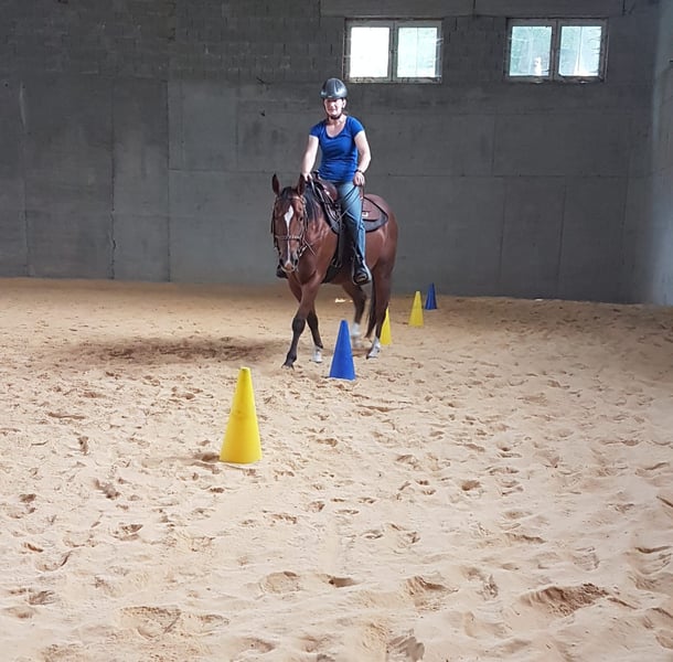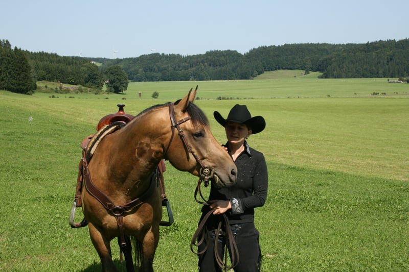 - Training for young horses, including stallions - Correction riding - Transitioning English-ridden horses to Western - Basic training for all horse breeds - Competent riding instruction for beginners and advanced riders (also possible on school horses) - Groundwork, double lunge and all of this with patience and calmness towards the horse partner. We want to have sociable, self-confident, and willing horses. Therefore, our goal is to promote the strengths of the horse and balance out the weaknesses, regardless of whether it is a young, leisure, or competition horse. A solid foundational training for young horses requires a trusting cooperation with humans, and this always starts on the ground. Here we create the basis that lays the foundation for respect and trust. With the right training consisting of groundwork, basic work, gymnastic exercises, maneuver training, and "relaxing" in the terrain, we manage to maintain healthy, powerful, and above all, capable horses. I am happy to take your horse in full or partial training. The stated price applies for 5 times a week including paddock box. Daily turnout. Inquiries are welcome at 0152/02633558 www.bluediamond-qh.de