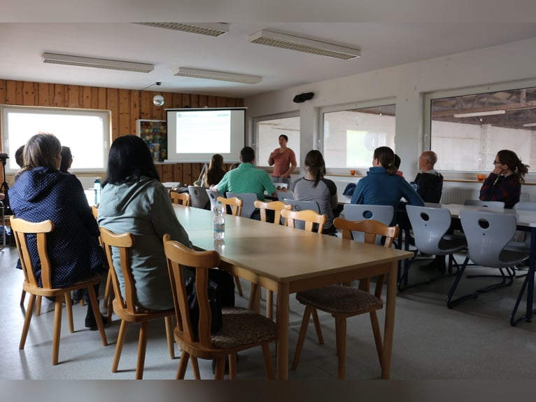 Para todos aquellos que buscan una nueva o primera cualificación profesional en la industria ecuestre. Por favor, consulte los requisitos. Curso de 14 días con examen final ante el comité de examen de la FN según la APO de la Federación Ecuestre Alemana. En este contexto, también se puede completar el permiso de manejo de caballos y la insignia de longeo 5 antes del curso principal. Para esto, por favor consulte por separado. Contenidos del curso de preparación y examen en las materias: • Cuidado/alimentación del caballo • Trabajos en el establo, higiene, instalaciones • Cuidado del equipo, ensillado y embocadura • Longeo • Veterinaria • Herrado • Conocimientos básicos relacionados con la actividad Costos a consultar Alojamiento en apartamentos de vacaciones en Gut Drebsdorf posible.