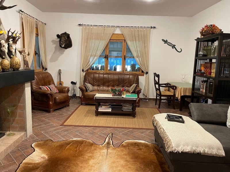 Rustic land for recreation and big game hunting of about 430 ha. A large part of the property is fenced, distributed in Monte pardo, 20 hectares of pine forest, heather and 160 hectares of eucalyptus, with 2 repopulations of cork oaks, 30 hectares of holm oaks and chestnut trees. The estate has about 2.000 olive trees, 4 ponds and a small reservoir. It has 2 wells legalised and approved by the Cuenca Hidrográfica del Tajo. Registered as a Private Hunting Reserve with a large number of deer, wild boar and roe deer. It has a Fire Prevention Plan approved by the Regional Government of Extremadura. It is an area of protected areas for protected fauna: Imperial Eagle, griffon and black vultures, among others. It has a new house with living room and large kitchen, gymnasium, etc. Swimming pool and garden, heating, mains electricity, borehole for drinking water. There are also 5 new rural flats, 3 of them share another swimming pool. Two new warehouses of 700m2 between them. A wonderful property ready to enjoy nature. 2 and a half hours from Madrid, all motorway.