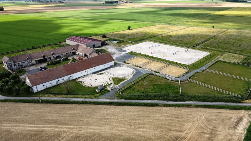 Installations équestres complètes sur 5ha50: carrière 45x80 m, manège couvert 20x42 m, 29 boxes avec abreuvoirs automatiques, rond de longe, emplacement pour marcheur, douches eau chaude, selleries, paddocks, herbages, stockage foin/paille, forage double vanne, laboratoire, barre d’insémination Maison principale 230 m² + studio indépendant et T2 à rénover, et espaces supplémentaires à aménager. Un domaine clé en main alliant confort et performance. Frais d'agence 60000 € TTC