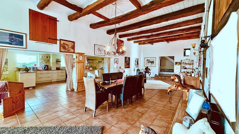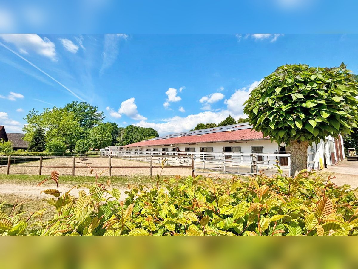Preis auf Anfrage! In attraktiver, unverbaubarer Lage im Wohngebiet von Bielefeld präsentiert sich diese außergewöhnlich gepflegte Reitanlage auf einem weitläufigen Grundstück von ca. 60.000 m². Die Kombination aus hochwertigem Wohnkomfort, professioneller Reitinfrastruktur und lukrativen Zusatzmöglichkeiten macht dieses Anwesen zu einer seltenen Gelegenheit für Pferdeliebhaber, Investoren oder Betreiber. Die Gesamtwohnfläche von ca. 530 m² verteilt sich auf drei Einheiten und bietet flexible Nutzungsmöglichkeiten – vom Mehrgenerationenwohnen bis hin zur Kombination von Wohnen und Vermietung. Video: https://youtu.be/_25ZtxkpnuQ Wohnbereich im Überblick: Hauptwohnung (ca. 340 m²): Großzügige Diele, 6 Zimmer, offene Einbauküche, Schlafzimmer mit integrierter Sauna, Badezimmer, Gäste-WC, Abstellraum sowie ein separates Gästezimmer mit eigenem Bad und Eingang Studio (ca. 110 m²): Aktuell leerstehend – ideal für individuelle Nutzung oder Vermietung Weitere Wohnung (ca. 70 m²): Derzeit vermietet (bei Bedarf kündbar) Ausstattung & Highlights: Gehobene Ausstattung, gepflegter Zustand Voll unterkellert Kamin vorhanden Sauna im Wohnbereich Zentralheizung (Öl) Bodenbeläge: Fliesen Fernblick Reitanlage & Außenbereich: Reithalle (20 x 40 m) mit Reiterstube inkl. Damen- und Herren-WC Außenreitplatz (20 x 60 m) mit hochwertigem Dressurboden Rennbahn (ca. 650 m Länge) Überdachte Führanlage für 6 Pferde Wasch- und Rotlichtanlage für Pferde Insgesamt 23 Pferdeboxen: 13 große Boxen mit Paddocks in der Halle 7 Boxen im Außenstall Offenstall für 3 Pferde Scheune zur Lagerung von Heu und Stroh Trecker vorhanden Grundstück & Flächen: Gesamtfläche: ca. 60.000 m² Davon ca. 2 ha Ausgleichsfläche (ca. 2 km entfernt) Teilflächen verpachtet bzw. landwirtschaftlich genutzt Besonderheiten: Photovoltaikanlage mit 61 kW Leistung (Laufzeit bis 2031) monatlicher Ertrag ca. 1.500 € Vielseitige Nutzungsmöglichkeiten (privat, gewerblich, Investition) Ruhige, unverbaubare Lage Kaufpreis: Preis auf Anfrage --- Sonstiges Dieses Objekt bieten wir in Kooperation mit einem unserer Netzwerk-Makler an. Mit Ihrer Kontaktanfrage akzeptieren Sie, dass Sie sich für dieses Objekt interessieren und ein Expose von unserem Netzwerk-Makler anfragen. Ebenso bestätigen Sie die Provisionsvereinbarungen zwischen unserem Netzwerk-Makler und Ihnen, die im Falle eines notariell bestätigten Kaufvertrages rechtskräftig werden. Ebenso bestätigen Sie, dass wir berechtigt sind, Ihre Kontaktdaten an den Netzwerk-Makler weiterzuleiten.