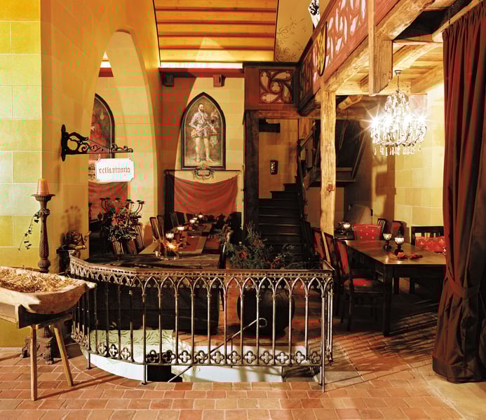 Dodatkowo na terenie znajduje się około 250 m² powierzchni na wydarzenia, kaplica w zabytkowej bramie (1450), kilka pomieszczeń gospodarczych i magazynowych, piwnica z łukami, piwnica na wino, warsztat oraz duża stodoła (2 piętra, około 800 m²).