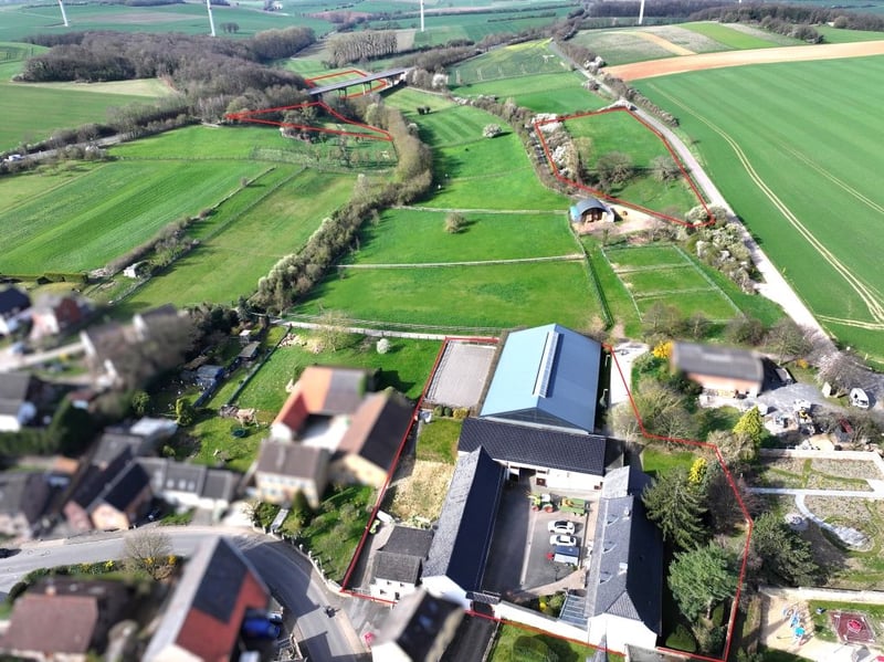 En plus de la maison d'habitation spacieuse et classée monument historique, le complexe comprend une autre maison d'habitation, deux bâtiments équestres, une carrière couverte, une aire de dressage et environ 3 hectares de terres agricoles. L'installation a été continuellement rénovée et agrandie depuis 1994 jusqu'à aujourd'hui. Elle se présente dans un état extrêmement moderne et de haute qualité.