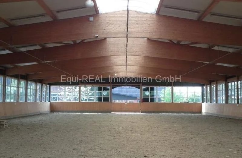 Newly built equestrian facility with an unobstructed view of the Vogtland from the riding hall! The property is not located in Jena! This private estate features a brand new, top-modern riding hall. Currently, there are 20 stalls in the stables. Riding arena 60x50m and riding hall 50x20m equipped with the best surfaces. Managed land approximately 5 hectares. Further details will be sent to you after signing a confidentiality agreement, as the equestrian facility is fully occupied and clients should not be disturbed. Note: An energy performance certificate according to GEG is not required. We would like to point out that we are acting as dual agents. Address: DE-07548 Gera Total area approx.: 50,000 m² Main area approx.: 2,000 m² Plot approx.: 50,000 m² Year of construction: 2022 Energy performance certificate type: This building is not subject to the requirements of the GEG. Price: €1,800,000 Commission: Upon conclusion of a purchase contract, a brokerage/commission fee of 4.76% including 19% VAT on the purchase price will be due from the buyer. Note: The information we provide is based on the details given by the seller. We cannot guarantee the accuracy and completeness of the information. A prior sale and errors are reserved. Terms and Conditions: We refer to our General Terms and Conditions. By further utilizing our services, you acknowledge that you are aware of and agree to them.