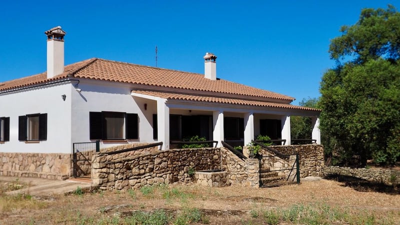 Prezentujemy niezwykły, w pełni wyposażony wiejski dom, 500 m od centrum wsi, ale jednocześnie całkowicie odizolowany od innych domów, idealny do życia w ciszy na wsi, ale z usługami wsi w odległości spaceru. Nieruchomość posiada główny dom z 3 przestronnymi sypialniami, każda z łazienką, duży salon z kominkiem, wyposażony w wysokiej jakości drewniane meble, jak widać na zdjęciach. Rustykalna kuchnia z piecem opalanym drewnem i ceramiczną płytą grzejną. Ogrzewanie za pomocą kotła gazowego. Wszystkie drzwi i okna są również wykonane z drewna pierwszej jakości, metalowe okiennice, które zapewniają dodatkowe bezpieczeństwo domu. Posiada garaż, basen z podświetlanym wodospadem, frontowe patio z tarasem z natryskami wodnymi na lato i fantastyczny ogród. Położony w środku pięknego gaju dębu korkowego, 3 hektary ziemi, sad z różnymi drzewami owocowymi i studnią artezyjską. Różne działki do oddzielenia wszelkiego rodzaju zwierząt, koni, owiec ... Szopy dla zwierząt i w pełni wyposażona kurnik o powierzchni 600 metrów kwadratowych. Różne szopy magazynowe. Dom usługowy z salonem, kuchnią, sypialniami i poddaszem w pełni wyposażonym. 70 metrów podłogi plus 35 metrów poddasza.