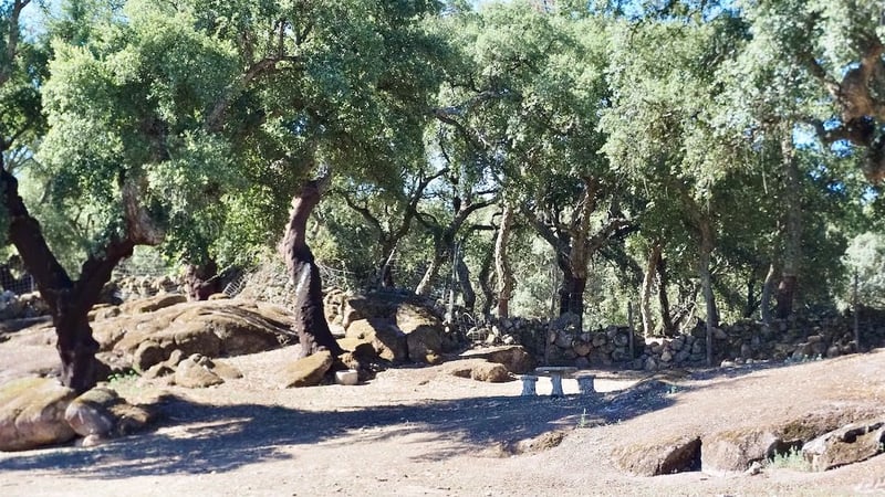 We presenteren een buitengewoon volledig uitgerust landhuis, op 500 m van het centrum van het dorp, maar tegelijkertijd volledig geïsoleerd van andere huizen, ideaal om te leven in de rust van het platteland, maar met de diensten van het dorp op loopafstand. De woning heeft een hoofdgebouw met 3 ruime slaapkamers met elk een eigen badkamer, een grote woonkamer met open haard, ingericht met houten meubels van hoge kwaliteit, zoals te zien is op de foto's. Rustieke keuken met houtkachel en keramische kookplaat. Verwarming d.m.v. dieselketel. Alle deuren en ramen zijn ook van eerste kwaliteit hout, metalen luiken die een extra veiligheid aan het huis geven. Het heeft een garage, een zwembad met verlichte waterval, een patio aan de voorzijde met een terras met watersproeiers voor de zomer en een fantastische tuin. Genesteld in het midden van een prachtig kurkeikenbos, 3 hectare grond, boomgaard met verschillende fruitbomen en geboorde put. Verschillende percelen om alle soorten dieren, paarden, schapen te scheiden ... Schuren voor dieren en een volledig uitgerust kippenhok van 600 vierkante meter. Verschillende opslagloodsen. Servicehuis met woonkamer, keuken, slaapkamers en zolder van alle gemakken voorzien. 70 meter vloer, plus 35 meter zolder.