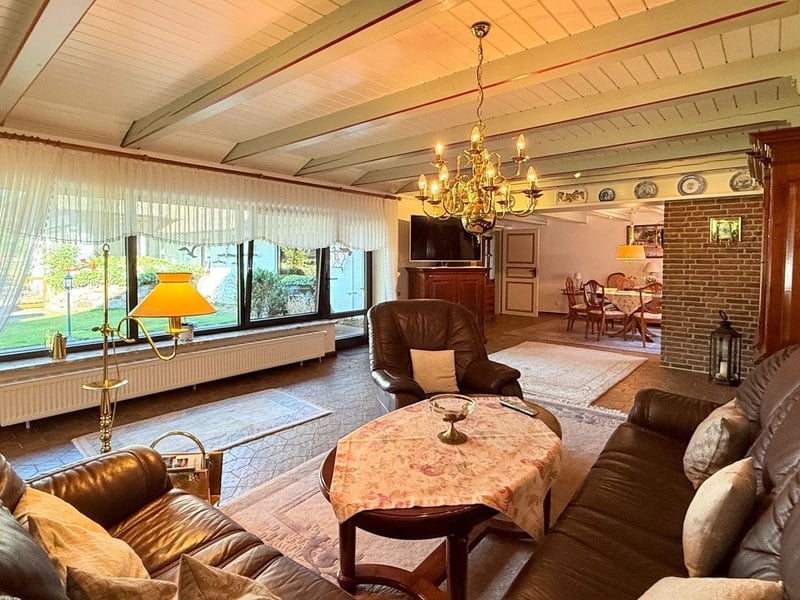 Arlewatt, midden in het hart van de paardenhoofdstad Noord-Friesland Goed onderhouden, landelijk karakteristiek rieten landhuis op een perceel van circa 3,38 hectare (afgerond), voorzien van een Easy-Wind windmolen en PV-installatie, gelegen nabij de Kreisstadt Husum en het UNESCO Werelderfgoed Waddenzee/Nederlandse Noordzee. Een paradijs voor paardenliefhebbers: In totaal 3 paardenstallen met 11 boxen, een rijbak, een weide-afscheiding en voldoende weiland maken deze ruime woning, die volgens het bestemmingsplan in een "Speciaal gebied voor paardensport" ligt, tot een waar paradijs voor paardenliefhebbers. Dit rieten landhuis ligt op een perceel van circa 3,38 hectare, vlakbij de Noordzee en daarmee het UNESCO Werelderfgoed Waddenzee, midden in Noord-Friesland. Een paradijs voor paardenliefhebbers: Met in totaal 3 paardenstallen, 11 boxen, een rijbak en een weide-afscheiding op eigen grond, vormt dit rieten landhuis, dat volgens de gebruiksplan in een "Speciaal gebied voor paardensport" ligt, een waar paradijs voor paardenliefhebbers. Het charmante, rieten landhuis straalt een landelijke sfeer uit. De bijgebouwen en de tuinontwerpen maken deze ensemble tot een echt juweel. Het meer dan 100 jaar oude, voortdurend gerenoveerde en gemoderniseerde rieten landhuis beschikt over circa 165 m² woonoppervlakte en circa 28 m² gebruiksoppervlakte. De bijgebouwen hebben een totale gebruiksoppervlakte van ongeveer 357 m². Het perceel beslaat circa 33.782 m². Indeling: Hoofdhuis met rieten dakbedekking (ca. 165 m² woonoppervlakte en ca. 28 m² gebruiksoppervlakte): Begane grond: Ruime woon-/eetkamer met kachel (niet in gebruik), terras met markies, een extra kamer, keuken met inbouwkeuken, provisiekamer, douche-/badkamer, wasruimte, gangen. Verdieping: Slaapkamer met aangrenzende inloopkast, douchebad, gang, bergruimtes. Garage met elektrische poort. Paardenstal bij het hoofdhuis (ca. 115 m² gebruiksoppervlakte) Paardenstal met 2 grote paardenboxen, 2 kleinere boxen en een open ruimte voor de boxen, serre, zadelkamer, verwarmingsruimte, ruimte voor olie- tanks. Bedrijfsgedeelte: Vrijstaand paardenstal (ca. 50 m² gebruiksoppervlakte) Vrijstaand paardenstal in stalen constructie en houten bouwstijl met zadeldak, voorzien van 4 paardenboxen en een extra box als opslag- en aansluitruimte. De drinkbakken zijn verwarmbaar. Separaat gelegen paardenstal op de weilanden met eigen toegang (ca. 110 m² gebruiksoppervlakte) Paardenstal in staal/hout-constructie met zadeldak, gelegen op de wei, met 3 paardenboxen en een open ruimte voor de boxen. Open stal (gebruikersoppervlakte ca. 15 m²) Op de wei bevindt zich een open stal. Massief tuinhuis (ca. 22 m² gebruiksoppervlakte) Stevige tuinwoning met zadeldak en toegangsdeur met lichtspleet. Houten garage (gebruikersoppervlakte ca. 45 m²) Het object is voortdurend gerenoveerd en gemoderniseerd. Een rijbak en het bijbehorende weiland maken dit paradijs voor ruiters compleet. Op het perceel bevindt zich een EASY-Wind windmolen en een PV-installatie. Olie centrale verwarming uit 1989. Energieprestatiecertificaat met eindenergie 373,0 kWh/(m²). Klasse H. Oplevering in overleg. Vraagprijs: € 695.000,-- Verzorgde staat: Dit historische rieten landhuis met aanbouw is voortdurend gerenoveerd en gemoderniseerd. Nabij de Noordzee: Binnen enkele kilometers bereikt u de Kreisstadt Husum en het UNESCO Werelderfgoed Waddenzee/Nederlandse Noordzee. Garages en parkeergelegenheid: Op het terrein bevindt zich – naast de hoofdgarage – een houten garage (ca. 45 m²). Daarnaast zijn er meerdere open parkeerplaatsen beschikbaar. Windmolen: Op het perceel staat een Easy-Wind windmolen. PV-installatie: Eigen zonnepanelen. Eigen bron: Er is een eigen bron op het terrein. Eigen zuiveringsinstallatie: Privé-kleinsanitaire installatie met gemeenschappelijk zuiveringstuin. Functionele indeling: Het landhuis is zeer ruim opgezet en biedt in totaal ca. 165 m² woonoppervlakte en ca. 28 m² gebruiksoppervlakte in het hoofdhuis. Bedrijfsgedeelte voor de paardensport: Zie pagina 5. Serre: Het landhuis beschikt over een serre, gebouwd aan de stallingsgedeelte van het hoofdhuis. Paardenboxen: Het landhuis beschikt over in totaal 11 paardenboxen verdeeld over 3 stallen. Rijbak: Kort en gemakkelijk bereikbaar: vlakbij het hoofdhuis en nabij een van de stallen ligt een rijbak (groene zandbodem, gedraineerd). Er zijn 2 sproei-installaties voor de rijbak. Friese wal: Als landelijk kenmerk heeft het landgoed een Friese wal. Rieten dak: Het dak van het hoofdhuis en de aangrenzende paardenstal is met riet bedekt. Massief tuinhuis: Een massief tuinhuis voor tuinbenodigdheden en als werkplaats, snel bereikbaar vanaf het hoofdhuis. Verwarming en open haard: Het hoofdhuis wordt verwarmd door een oliecentrale verwarming uit circa 1989, gelegen in de aangrenzende paardenstal. Daarnaast bevindt zich in de woon-/eetkamer een kachel (niet in gebruik).