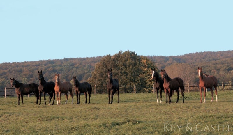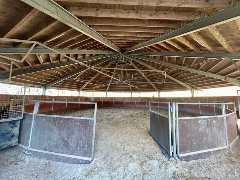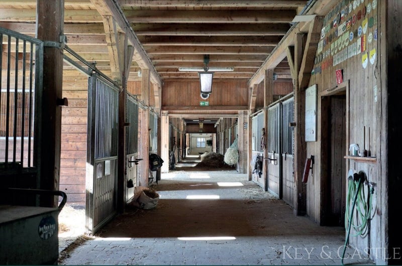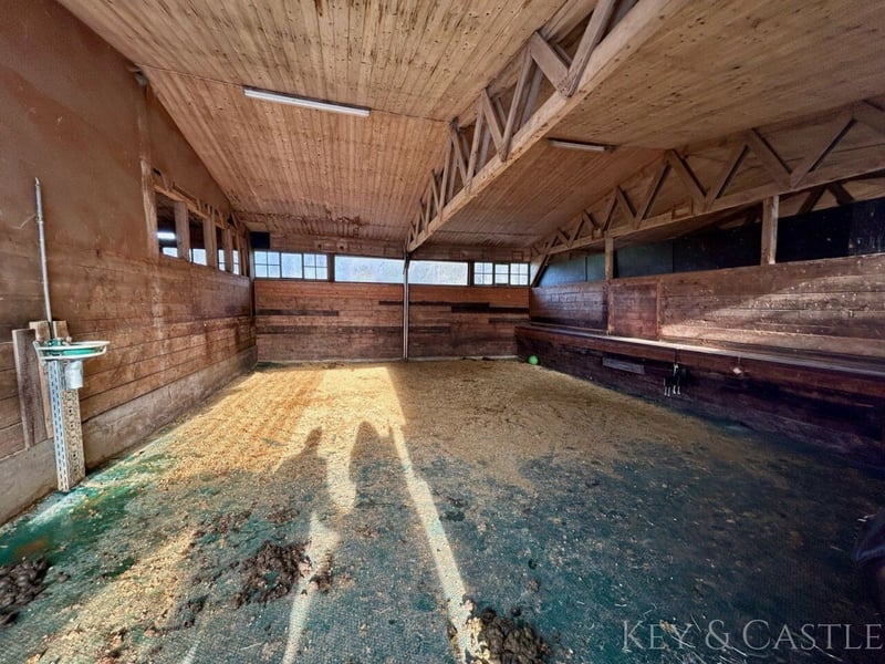 Welcome to beautiful Lower Saxony, where this beautiful stud farm built in 1956 is for sale. This unique property is situated in an idyllic secluded location on the edge of the forest and extends over an area of 20 hectares of rounded pasture land, with an additional 3 hectares of pasture land approx. 2 kilometers outside the property. There is an appraisal from 2012, according to which the property already had a market value of over € 7,000,000 at that time. The main building with its generous 295 m² exudes elegance and comfort and offers the perfect retreat. For the efficient management of the estate, there is a caretaker's house and 4 apartments for employees, as well as two further apartments. The stables offer space for around 50 horses and are equipped with outdoor boxes, open and loose stables as well as extensive meadows, which are located directly on the property, with self-watering troughs and shady trees. and shady trees. This stud is a true breeder's paradise, with a dedicated stallion pavilion and high fenced pastures to facilitate stallion management. It also has an impressive indoor riding arena (watering system also available) measuring 22x56 m, a 20x60 m outdoor arena with watering system, a horse walker with lunging circle and a racecourse. This provides optimum conditions for riding activities and training sessions for horses of all ages and ability levels. In addition to the facilities mentioned, the property also includes a banqueting hall with bar and fireplace, a detached garage building with 5 garages and an EU insemination station, an administration building with a stud manager's apartment (135 sqm) and a staff apartment (75 sqm) as well as four staff apartments. There are also various stable buildings, including the main stable with 36 boxes, a solarium and a further 11 outdoor boxes as well as several stables that can be divided into different sections. The property's vegetation includes valuable trees from the 1950s. The purchase price for this unique stud farm is 7.1 million euros according to an appraisal from 2012 (appraisal available). The insurance value is 11.3 million euros. Don't miss the opportunity to acquire this exclusive property and make your equestrian dream come true. Please contact us for further information or to arrange a viewing. __________________ The buyer's brokerage fee is 3.57 % of the actual purchase price including VAT. The brokerage fee is not included in the purchase price and is to be paid by the buyer to Key & Castle (owner Slobodan Topic, Berliner Str. 29, 13189 Berlin). It is due and payable at the notary's office. The above offer is subject to change and subject to our General Terms and Conditions.
