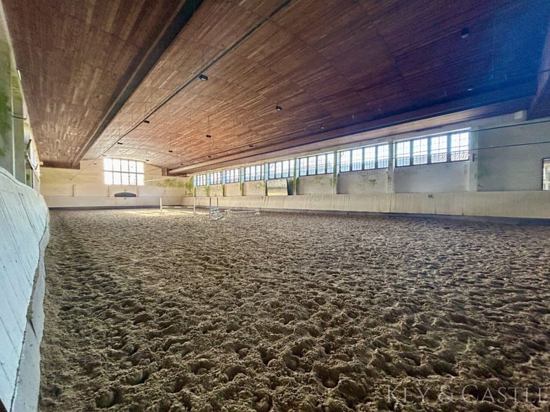 Witamy w pięknej Dolnej Saksonii, gdzie ta wspaniała stadnina koni, zbudowana w 1956 roku, jest na sprzedaż. Ta wyjątkowa nieruchomość położona jest w idyllicznym, zacisznym miejscu na skraju lasu i rozciąga się na obszarze 20 hektarów zaokrąglonych pastwisk, z dodatkowymi 3 hektarami pastwisk około 2 kilometry poza nieruchomością. Istnieje opinia rzeczoznawcy z 2012 r., zgodnie z którą wartość rynkowa nieruchomości już wtedy wynosiła ponad 7 000 000 EUR. Główny budynek o powierzchni 295 m² emanuje elegancją i komfortem i oferuje idealne miejsce na wypoczynek. W celu sprawnego zarządzania nieruchomością znajduje się dom dozorcy i 4 mieszkania dla pracowników, a także dwa kolejne mieszkania. Stajnie oferują miejsce dla około 50 koni i są wyposażone w boksy zewnętrzne, otwarte i luźne stajnie, a także rozległe łąki, które znajdują się bezpośrednio na posesji i są wyposażone w koryta samonawadniające i zacienione drzewa. i zacienione drzewa. Stadnina ta jest prawdziwym rajem dla hodowców, z dedykowanym pawilonem dla ogierów i wysokimi ogrodzonymi pastwiskami ułatwiającymi zarządzanie ogierami. Posiada również imponującą krytą ujeżdżalnię (dostępny jest również system nawadniania) o wymiarach 22x56 metrów, arenę zewnętrzną o wymiarach 20x60 metrów z systemem nawadniania, chodnik dla koni z lonżownikiem i tor wyścigowy. Zapewnia to optymalne warunki do jazdy konnej i sesji treningowych dla koni w każdym wieku i na każdym poziomie umiejętności. Poza wymienionymi obiektami, nieruchomość obejmuje również salę bankietową z barem i kominkiem, wolnostojący budynek garażowy z 5 garażami i unijną stacją inseminacji, budynek administracyjny z mieszkaniem kierownika stadniny (135 metrów kwadratowych) i mieszkaniem dla personelu (75 metrów kwadratowych), a także cztery mieszkania dla personelu. Znajdują się tu również różne budynki stajenne, w tym główna stajnia z 36 boksami, solarium i kolejne 11 boksów zewnętrznych, a także kilka stajni, które można podzielić na różne sekcje. Roślinność nieruchomości obejmuje cenne drzewa z lat 50-tych XX wieku. Cena zakupu tej wyjątkowej stadniny wynosi 7,1 miliona euro według wyceny z 2012 roku (wycena dostępna). Wartość ubezpieczenia wynosi 11,3 mln euro. Nie przegap okazji, aby nabyć tę ekskluzywną nieruchomość i spełnić swoje jeździeckie marzenie. Prosimy o kontakt w celu uzyskania dalszych informacji lub umówienia się na oglądanie. __________________ Prowizja pośrednika kupującego wynosi 3,57% rzeczywistej ceny zakupu z VAT. Opłata za pośrednictwo nie jest wliczona w cenę zakupu i jest płatna przez kupującego na rzecz Key & Castle (właściciel Slobodan Topic, Berliner Str. 29, 13189 Berlin). Jest ona należna i płatna w kancelarii notarialnej. Powyższa oferta może ulec zmianie i podlega naszym Ogólnym Warunkom Handlowym.