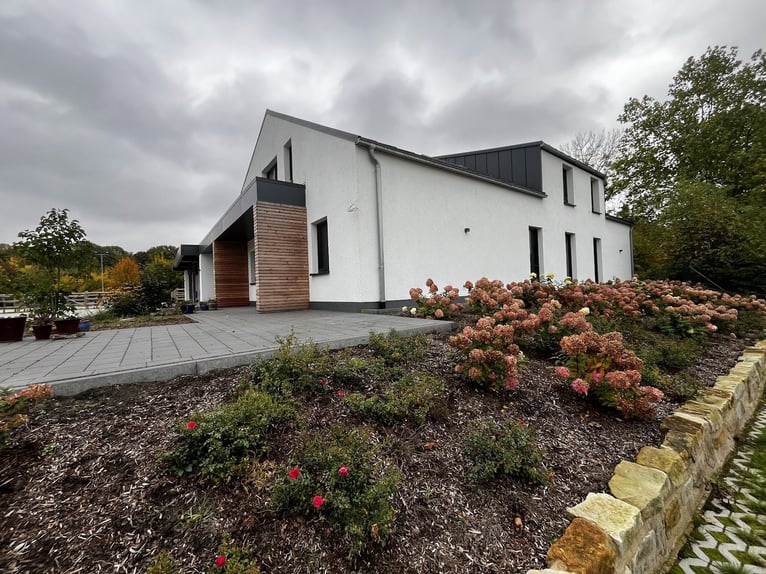 Equestrian property located between Münsterland and East Westphalia – excellent infrastructure for horse enthusiasts with top training conditions, also in the immediate vicinity. Only 15 minutes to the DOKR and many renowned trainers. The extensively renovated estate includes a main house with 263 sqm, including a granny flat, an indoor riding arena with adjoining stables (5 boxes), a separate stable (4 boxes), garages, a large carport, a spacious outdoor riding arena with floodlights, fenced pastures, sand paddocks, and much more. Following the renovation, the house meets KfW 70 standards, featuring photovoltaic panels, a water-cooled fireplace, heat pump, triple-glazed windows, and more. This property is ideal for professional riders with an exclusive clientele or for private horsekeeping for those who wish to enjoy peace and harmony with their horses without sacrificing comfort and excellent training conditions. The house is modern, high-quality, and cozyly furnished. Enjoy your time on one of the terraces or in the spacious open-plan living kitchen with friends, while taking in a clear view of the pastures. If you feel this could be your new home, please contact us to arrange a viewing appointment. We are happy to send you further information about the house, the energy certificate, and additional photos upon request.