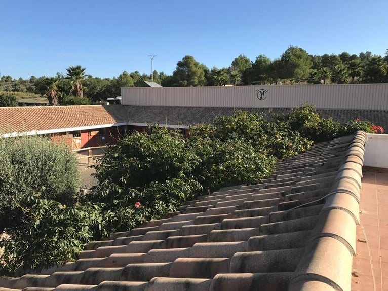 Deze exclusieve manege, gebouwd in 2012, ligt in de gemeente Buñol, in de provincie Valencia (Spanje). Met 343 zonuren per maand is Valencia een van de zonnigste gemeenten van Europa! Er is momenteel een fokkerij, een manege en een pensionstal op het terrein. Het hele landgoed heeft een oppervlakte van 15.000 vierkante meter en omvat: - een parkeerplaats - 1 round pen - 15m x 50m rijhal - 25mx50m manege - een manege (60m2) met 2 badkamers, eetkamer met houtkachel en een veranda van 50m2 met barbecue. In het bovenste gedeelte van het gebouw is er een terras van 60m2. - Grote zadelkamer met videobewaking en alarmsysteem (aangesloten op een beveiligingsbedrijf) - 22 boxen (3mx3m elk) met automatische waterbakken - 2 ruimtes voor de opslag van voer en reinigingsmateriaal, waarvan een met een silo met een capaciteit van 8000kg - douches voor de paarden - 260m2 open omheining - Overdekte ruimte van 40m2 voor de fokmerries op 1800 meter grond (omheind) - tuin en zwembad met een capaciteit van 70000 liter: - verschillende paddocks - 9000m2 braakliggend terrein Bovendien loopt er een irrigatiesloot door het landgoed zodat het zowel gebruikt kan worden als drenkplaats voor de dieren als voor irrigatie. Het hele terrein heeft een verhard looppad, dat overdekt is. De finca is zelfvoorzienend wat betreft elektriciteit dankzij een zonne-energiesysteem, maar kan gemakkelijk worden gevoed via het lokale elektriciteitsnet. Van de 1500 vierkante meter die legaal bebouwd zou kunnen worden, is 800m2 nog vrij en kan gebruikt worden voor extra boxen, opslagloodsen of appartementen. De paden zijn beplant en worden geïrrigeerd met druppelirrigatie. Het object ligt op slechts 5 minuten van de snelweg A3 Madrid-Valencia en 20 minuten van Valencia. Buñol is een stad met alle voorzieningen: Gezondheidscentrum, RENFE treinstation, scholen, winkels, enz. De boerderij heeft een vergunning om 45 paarden te houden en is erkend als ruiterclub door de Koninklijke Hippische Federatie van de Valenciaanse Gemeenschap (Real Federación Hípica de la Comunidad Valenciana).