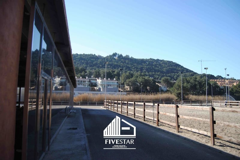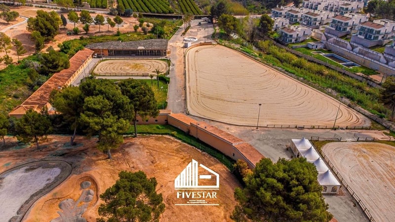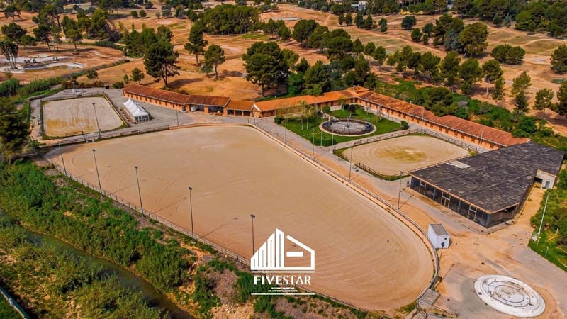 This high-quality equestrian complex is for sale in an exclusive location in El Bosque - one of the highest quality and most secure residential complexes in Valencia! The entire area is private and can only be entered through a security gate with a security guard. The equestrian centre is located directly on the golf course. The total area of the complex, built in 2009, is 19,500m2. Features: - 47 boxes - Horse walker for max. 6 horses - showers - Large tack room - large, light-flooded hall (802m2) with window fronts (still under construction), ideal for use as a restaurant - small staff house with just under 40m2 - alarm system - Fully fenced grounds bordering the golf course - a large riding arena with just under 5,000m2, with high-quality geotextile surface and irrigation system - a riding arena of just under 1,000m2, with high-quality geotextile surface and irrigation system - 2 lawns with lighting of just under 850m2 each - large, asphalted car park with fountain and space for lorries and cars - All machinery (tractor, sweeper etc. included in the purchase price) - All licences available A high-quality house for sale or rent in the immediate vicinity (also in the el Bosque complex) can be arranged. We speak German, English and Spanish!