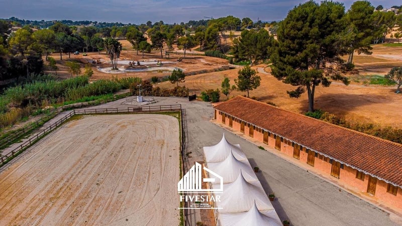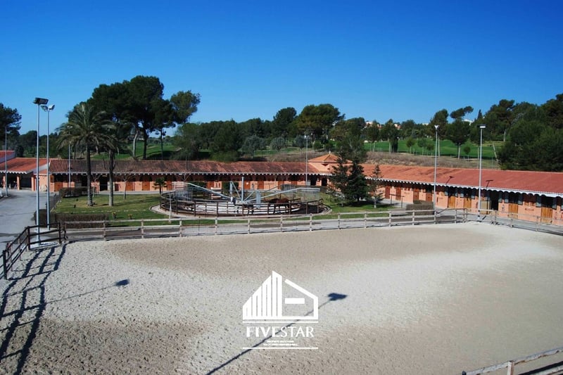 Ce centre équestre de grande qualité est à vendre dans un endroit exclusif à El Bosque - l'un des complexes résidentiels les plus haut de gamme et les plus sûrs de Valence ! L'ensemble du domaine est privé et ne peut être pénétré que par un portail de sécurité avec un gardien. Le centre équestre est situé directement sur le terrain de golf. La superficie totale du complexe, construit en 2009, est de 19.500m2. Caractéristiques : - 47 boxes - marcheur pour max. 6 chevaux - douches - grande sellerie - grand hall inondé de lumière (802m2) avec baies vitrées (encore en gros œuvre), idéalement utilisable comme restaurant - petite maison pour le personnel d'à peine 40m2 - système d'alarme - terrain entièrement clôturé, jouxtant le terrain de golf - un grand manège de près de 5.000m2, avec sol en géotextile de haute qualité et système d'irrigation - un manège de près de 1.000m2, avec sol en géotextile de haute qualité et système d'irrigation - 2 pelouses avec éclairage de près de 850m2 chacune - un grand parking asphalté avec une fontaine et de la place pour les camions et les voitures - toutes les machines (tracteur, balayeuse, etc. inclus dans le prix d'achat) - toutes les licences sont disponibles Une maison d'habitation de qualité à acheter ou à louer à proximité immédiate (également dans le complexe el Bosque) peut être négociée. Nous parlons allemand, anglais et espagnol !