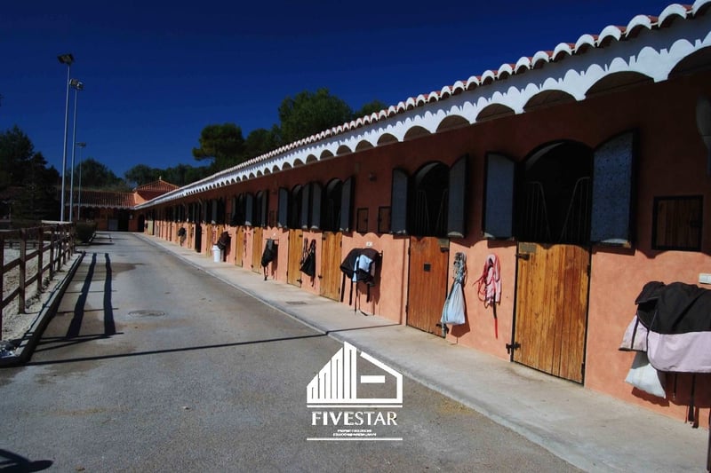 Este complejo ecuestre de alta calidad está a la venta en una ubicación exclusiva en El Bosque - ¡uno de los complejos residenciales de mayor calidad y seguridad de Valencia! Toda la zona es privada y sólo se puede entrar a través de una puerta de seguridad con un guardia de seguridad. El centro ecuestre está situado directamente en el campo de golf. La superficie total del complejo, construido en 2009, es de 19.500m2. Características: - 47 boxes - andador para un máximo de 6 caballos - duchas - Gran guadarnés - Gran nave luminosa (802m2) con frentes de ventana (aún en construcción), ideal para restaurante - Pequeña casa para el personal con algo menos de 40m2 - sistema de alarma - Terrenos totalmente vallados que lindan con el campo de golf - un gran picadero con algo menos de 5.000m2, con superficie geotextil de alta calidad y sistema de riego - un picadero de algo menos de 1.000 m2, con superficie geotextil de alta calidad y sistema de riego - 2 prados con iluminación de algo menos de 850 m2 cada uno - amplio aparcamiento asfaltado con fuente y espacio para camiones y coches - toda la maquinaria (tractor, barredora, etc. incluidos en el precio de compra) - todas las licencias disponibles Una casa de alta calidad en venta o alquiler en las inmediaciones (también en el complejo el Bosque) se puede arreglar. ¡Hablamos alemán, inglés y español!