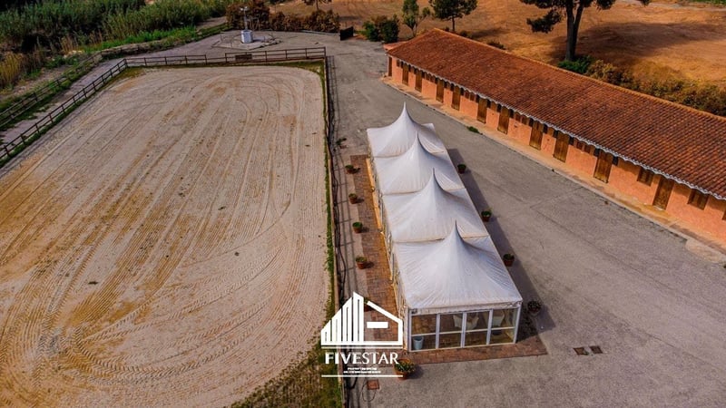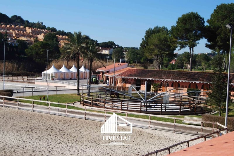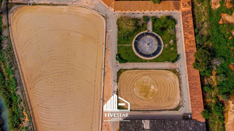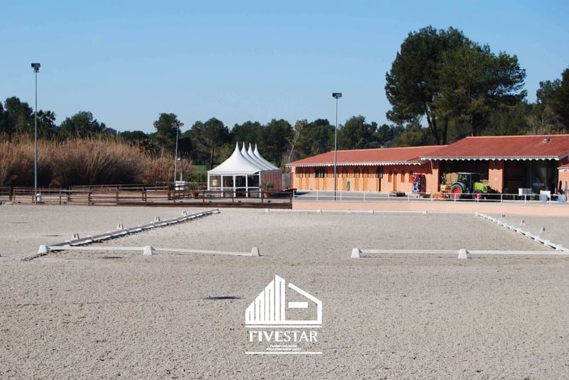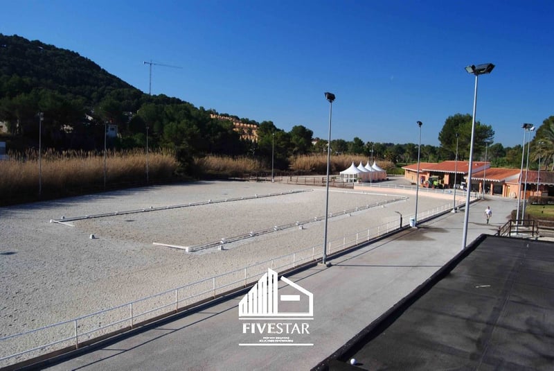 Ten wysokiej jakości kompleks jeździecki jest na sprzedaż w ekskluzywnej lokalizacji w El Bosque - jednym z najwyższej jakości i najbezpieczniejszych kompleksów mieszkalnych w Walencji! Cały obszar jest prywatny i można do niego wejść tylko przez bramę bezpieczeństwa z ochroniarzem. Ośrodek jeździecki znajduje się bezpośrednio na polu golfowym. Całkowita powierzchnia kompleksu, wybudowanego w 2009 roku, wynosi 19 500 m2. Cechy: - 47 boksów - Chodzik dla maksymalnie 6 koni - prysznice - Duży pokój siodlarski - duża, jasna hala (802m2) z frontami okiennymi (wciąż w budowie), idealna do wykorzystania jako restauracja - mały domek dla personelu o powierzchni poniżej 40m2 - system alarmowy - W pełni ogrodzony teren graniczący z polem golfowym - duża ujeżdżalnia o powierzchni nieco poniżej 5.000 m2, z wysokiej jakości geowłókniną i systemem nawadniania - ujeżdżalnia o powierzchni niespełna 1000 m2, z wysokiej jakości geowłókniną i systemem nawadniania - 2 trawniki z oświetleniem o powierzchni niespełna 850 m2 każdy - duży, asfaltowy parking z fontanną i miejscem na samochody ciężarowe i osobowe - Wszystkie maszyny (traktor, zamiatarka itp. wliczone w cenę zakupu) - wszystkie dostępne licencje Istnieje możliwość zorganizowania wysokiej jakości domu na sprzedaż lub wynajem w bezpośrednim sąsiedztwie (również w kompleksie el Bosque). Mówimy po niemiecku, angielsku i hiszpańsku!