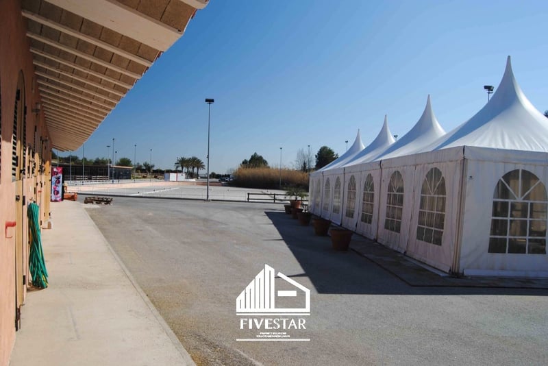 Zum Verkauf steht diese hochwertige Reitanlage in exklusiver Lage in El Bosque - einer der hochwertigsten und sichersten Wohnanlagen Valencias! Das gesamte Areal ist privat und kann nur durch eine Sicherheitspforte mit Wachmann betreten werden. Die Reitanlage liegt direkt am Golfplatz. Die Gesamtfläche der 2009 erbauten Anlage umfasst 19.500m2. Eigenschaften: - 47 Boxen - Führanlage für max. 6 Pferde - Duschen - große Sattelkammer - große, lichtdurchflutete Halle (802m2) mit Fensterfronten (noch im Rohbau), ideal Nutzbar als Restaurant - kleines Personalhaus mit knapp 40m2 - Alarmanlage - komplett eingezäuntes Gelände, welches an den Golfplatzt grenz - ein großer Reitplatz mit knapp 5.000m2, mit hochwertigem Geotextil Boden und Bewässerungsanlage - ein Reitplatz mit knapp 1.000m2, mit hochwertigem Geotextil Boden und Bewässerungsanlage - 2 Rasenflächen mit Beleuchtung von je knapp 850m2 - großer, asphaltierter Parkplatz mit Springbrunnen und Platz für LKW und Autos - alle Maschinen (Traktor, Kehrmaschine etc. im Kaufpreis inklusive) - alle Lizenzen vorhanden Ein hochwertiges Wohnhaus zum Kauf oder zur Miete in direkter Nähe (ebenfalls in der Anlage el Bosque) kann vermittelt werden. Wir sprechen deutsch, englisch, spanisch!