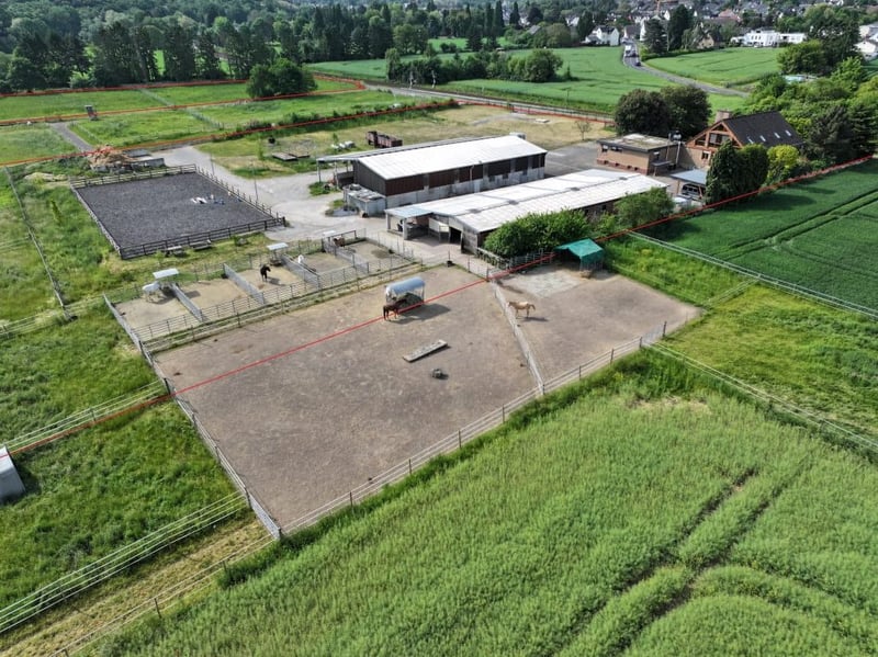 Całkowita powierzchnia 29,805 m², w tym około 450 m² na powierzchnię budowlaną w obszarze zewnętrznym, około 4,150 m² na powierzchnię podwórza i budynków oraz około 25,205 m² na powierzchnię użytków zielonych. Malowniczo położony, były gospodarstwo rolne znajduje się w odosobnieniu i dysponuje wysokiej jakości zmodernizowanym domem mieszkalnym, starym budynkiem, kompleksem stajennym z łącznie 20 boksami, halą magazynową z dachem podwieszanym, zewnętrznym placem do jazdy konnej oraz około 2,5 ha użytków zielonych. Świadectwo energetyczne: Świadectwo energetyczne jest w przygotowaniu. Możliwość zabudowy: Nieruchomość znajduje się w obszarze zabudowy zgodnie z przepisami prawa budowlanego. Prawo budowlane odnosi się do § 35 BauGB. Dostawy i odprowadzanie: Budynki są podłączone do publicznego systemu zaopatrzenia w wodę pitną oraz do kanalizacji. Dostępne są przyłącza elektryczne, telefoniczne i internetowe. Cena zakupu na życzenie.