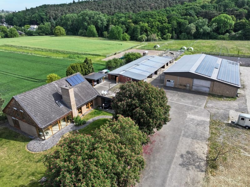 Total area 29,805 m², of which approximately 450 m² is residential building area in the outdoor area, approximately 4,150 m² is yard and building area, and approximately 25,205 m² is grassland area. The picturesque former farmstead is located in a secluded position and features a high-quality modernized residential house, an old age part, a stable complex with a total of 20 boxes, a storage hall with a lean-to roof, an outdoor riding arena, and approximately 2.5 hectares of grassland. Energy certificate: The energy certificate is in preparation. Buildability: The property is located in the building law outdoor area. The building law is governed by § 35 BauGB. Supply and disposal: The houses are connected to the public drinking water supply and the sewage system. Electricity, telephone, and internet connections are available. Purchase price on request.