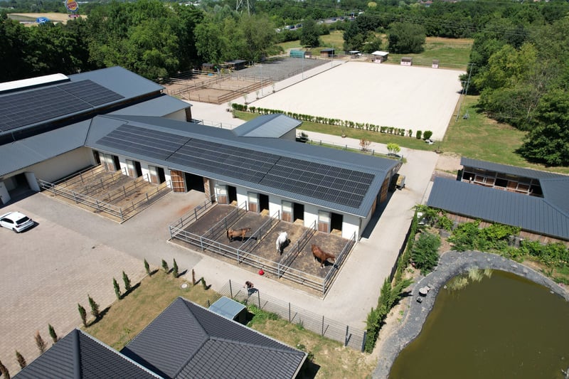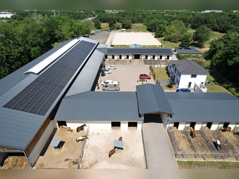 For sale is a first-class equestrian facility located in the heart of one of Germany’s most economically and infrastructurally attractive regions – ideally situated within the catchment area of the Bonn and Cologne metropolitan regions. The riding facility uniquely combines modern architecture, well-designed operational workflows, and top-quality construction with a stylish ambiance and versatile usage options. Whether as a riding center, training and trading operation, or event venue – this property meets all the requirements of a forward-looking equine business. The property is conveniently situated just minutes from the highway, ensuring optimal accessibility for clients, participants, and suppliers – a crucial advantage for daily operations and events. The entire estate was designed and built just a few years ago according to the latest standards. The focus was on functionality, economic efficiency, and species-appropriate horsekeeping. High-quality, solid construction meets energy-efficient planning – short distances and well-thought-out infrastructure enable cost-effective operation while providing high comfort for horses, riders, and staff. The centerpiece of the facility is the spacious indoor riding hall measuring 20 x 60 meters. The hall is flooded with natural light, features a high-quality riding surface, automatic watering system, and a fully mirrored short side. One end houses an office, which can be used multifunctionally as a competition registration area, administrative office, or catering space, along with a large spectator tribune offering excellent views of the arena. On the opposite end, there is a spacious machinery and forage hall, as well as a thoughtfully integrated manure storage. An attached stable block with wide aisles completes the functional main building. Additionally, this building includes staff accommodation. Overall, the facility offers space for approximately 60 horses. Most stalls are generously sized, light-filled, and approximately 4 x 4 meters, with some featuring covered outdoor paddocks measuring 4 x 8 meters. The majority of the boxes are equipped with modern automatic feeding systems for concentrated feed and provide an optimal stable climate. Complementing these are several large turnout paddocks, allowing flexible occupancy – suitable for broodmares, young horses, or group housing. For daily training and exercise, an excellent outdoor riding arena with an ebb-and-flow system is available beside the indoor hall. Measuring 40 x 70 meters with a top-quality riding surface, this arena meets the highest standards. Additional paved movement paddocks and a smaller area for lunging or free work complete the area. The directly adjacent pastures offer further options for species-appropriate horsekeeping. The entire infrastructure is designed for efficiency and profitability. An innovative manure management system significantly reduces personnel and time costs: manure is directly transported from the stalls via a floor hatch into a processing plant where it is shredded and automatically disposed of. This not only saves costs but also enhances hygiene throughout the stable area. Another highlight is the harmoniously integrated manager’s house, built in solid, modern prefabricated construction. This residence impresses with its stylish appearance and high functionality. Spread over two levels, it is ideal for farm managers, families, or staff. The modern design features clean lines, large windows, and bright rooms, providing a pleasant living environment. Almost all rooms offer a wonderful view of the riding facility. The building is environmentally friendly heated via a high-performance heat pump. A spacious, elegant terrace and a lovingly landscaped pond add to the quality of life right outside the door. Naturally, the entire riding facility includes all necessary ancillary and functional rooms for professional operation – generous wash bays, tack and feed rooms, storage spaces, sanitary facilities, and ample garages and parking spaces for cars and trailers. The well-planned layout ensures smooth workflows even during high operational volume or events. Thanks to its attractive location and excellent infrastructure, the riding facility is not only functional and stylish but also highly economically interesting. Regional box rent starts at just €700 per month, guaranteeing a stable and attractive income. Moreover, the property offers multiple revenue streams: horse training, trading, riding lessons, courses, rentals, or event hosting. The facility has proven its suitability as a tournament venue: it has successfully hosted several international equestrian competitions. Summary: This riding facility presents a rare opportunity for investors, equestrian enthusiasts, or entrepreneurs seeking a highly modern, economically managed, and versatile equestrian property. The combination of a prime location, top-notch equipment, and substantial economic potential makes this property a true highlight on the market. Brief Overview – Modern Equestrian Facility near Bonn/Cologne Location: • Prime location within the catchment area of Bonn and Cologne • Excellent connectivity, close to the highway • Quiet, rural surroundings with optimal accessibility Buildings & Infrastructure: • Built recently, a few years ago • High-quality, solid construction • Modern, well-designed concept for efficient management • Main building with a 20 x 60 m riding hall • Good riding surface, automatic watering, mirror wall • Office/registration area, catering space, tribune • Machinery hall, forage storage, manure hall • Directly attached stable block • Staff apartment Horsekeeping: • About 40 spacious boxes (4 x 4 m), some with paddocks (4 x 8 m) • Floodlit, equipped with feeding automats • Various turnout paddocks – total capacity for around 60 horses • Directly adjoining pastures Outdoor Facilities: • Riding arena (40 x 70 m) with ebb