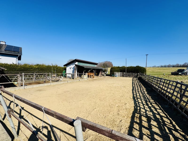 Dream Single-Family Home with Private Horse Keeping For sale is a unique single-family home in a quiet location on the outskirts of Bellingen in the idyllic Westerwald. This special property, built in 1960, combines rural charm with modern living standards and offers nature lovers, animal enthusiasts, and horse owners a home with many possibilities for development. Layout and Living Comfort: With a living area of approximately 185 m² spread over three floors, the house provides ample space for the whole family and is ideal for multi-generational living. A total of seven spacious rooms are available, including four bedrooms and a large living room. The rooms are bright, friendly, and offer a pleasant living atmosphere without any walk-through rooms. Two bathrooms, equipped with a shower and bathtub, as well as a separate guest WC, ensure high living comfort. The new fitted kitchen from 2024 impresses with an adjoining pantry and offers plenty of space for cooking enthusiasts. Thanks to existing connections on the upper floor, a second kitchen can be installed, ideal for multi-generational living. Comprehensive Modernizations – Perfect for Today's Demands: This house has been extensively renovated in recent years and meets today's modern living standards. The complete renewal of electrical and water lines, as well as the in-wall wiring in 2019, provide safety and comfort. The roof, including insulation and double-glazed insulated windows, ensures efficient energy use. Additionally, the tiled floors have been modernized, and the spacious wood-burning stove in the entrance area has been installed. Idyllic Property and Animal Keeping: The spacious property covers a total of approximately 10,000 m², consisting of a 1,602 m² house plot and additional areas for horse keeping. The private pasture land (4,858 m²) and additional leased land offer ideal conditions for private horse keeping. A horse stable with three spacious boxes and a riding arena with drainage were built in 2005. A separate tack and feed room, as well as a paddock, are also available. Thanks to the private well, the supply of animals is always secured. Leisure and Relaxation in the Green: The newly tiled terrace (2024) and the balcony invite you to relax. An outbuilding from 1975, currently used as a tack and feed room, can also serve as a party or event room. The electric gate with a light barrier ensures safety and comfort. Additional Features: The non-smoking house features in-wall wiring for a sound system in the living room and high-voltage connections for craft work. Two garages offer space for vehicles and equipment. Facts at a Glance: • Living area: approx. 185 m² on 3 floors • Plot size: approx. 10,000 m² • Year built: 1960, solid construction • Rooms: 7 (including 4 bedrooms) • Bathrooms: 2 bathrooms, guest WC • Horse stable for 3-4 horses with riding arena • Outbuilding (built in 1975) • New fitted kitchen (2024) • Roof renovation including insulation and windows • Wood-burning stove + Viessmann oil heating • Private well, high-voltage connection • Electric gate, 2 garages Conclusion: This property has been comprehensively modernized and meets all the requirements for comfortable, modern living. It is a true paradise for animal lovers, nature enthusiasts, and people who appreciate peace and privacy in an idyllic setting. Schedule a viewing appointment today and be convinced by this special offer! Bellingen is a local community in the Westerwaldkreis in Rhineland-Palatinate and is part of the Verbandsgemeinde Westerburg. The village is located in a valley about seven kilometers northwest of Westerburg at an elevation of around 430 meters above sea level. With an area of 4.29 km² and a population of approximately 600, Bellingen offers a rural atmosphere. • Proximity to Montabaur and Limburg an der Lahn: Bellingen is only about 15 kilometers from Montabaur and about 25 kilometers from Limburg an der Lahn. Both are important transport hubs in the region. Montabaur has a modern train station on the high-speed line Cologne–Frankfurt, enabling quick connections to cities like Cologne, Frankfurt, and other metropolises. The ICE connections offer comfortable and fast travel for commuters or travelers. • Road Traffic: South of Bellingen runs the federal highway 255, which connects Montabaur with Herborn. This road provides good access to the regional road network. The nearest motorway junction is in Montabaur on the A3 motorway, which connects Cologne and Frankfurt am Main. Overall, Bellingen offers good accessibility due to its proximity to important traffic routes while maintaining the peace and charm of a rural community.