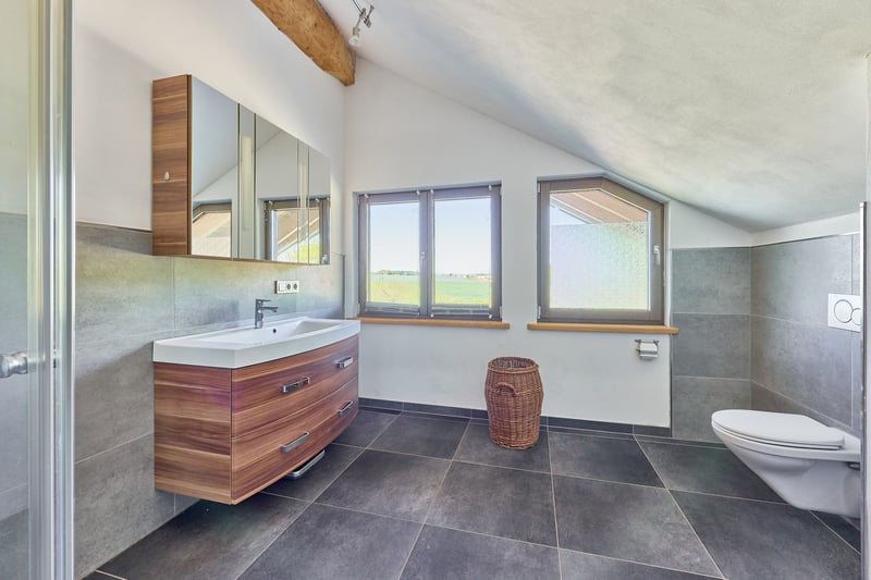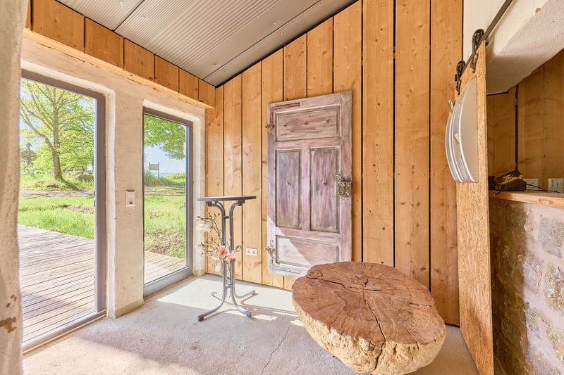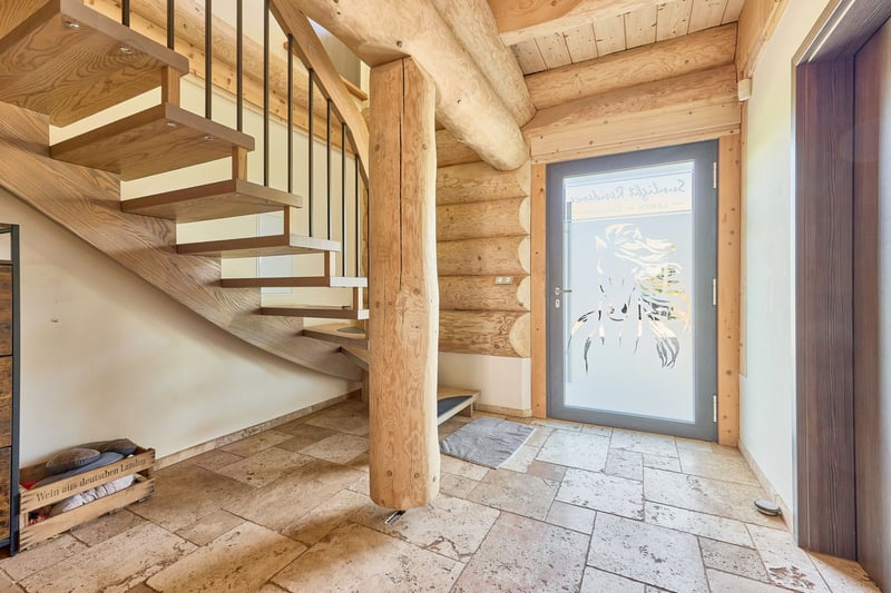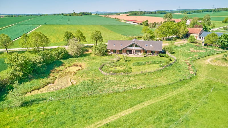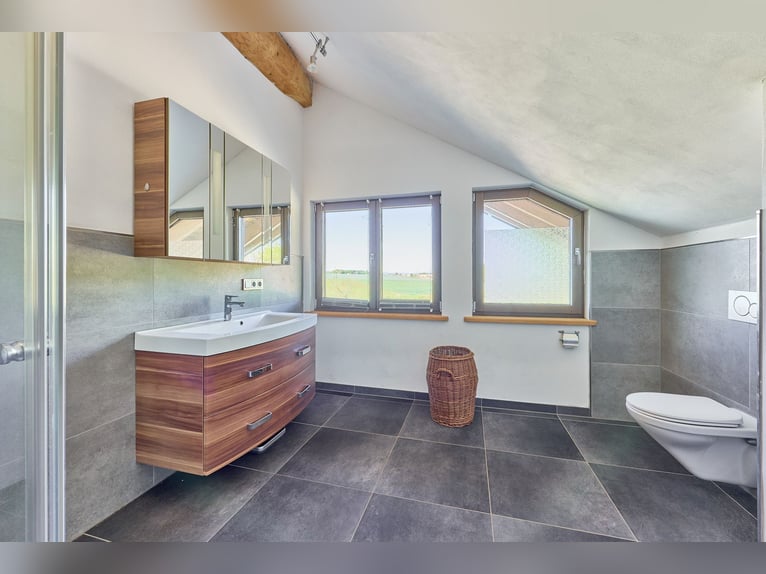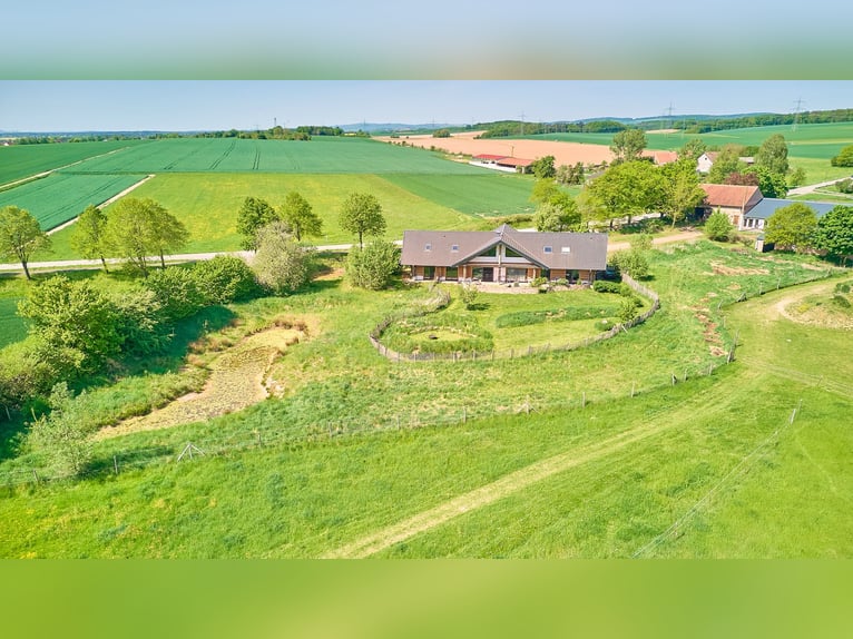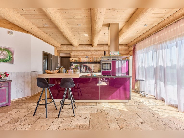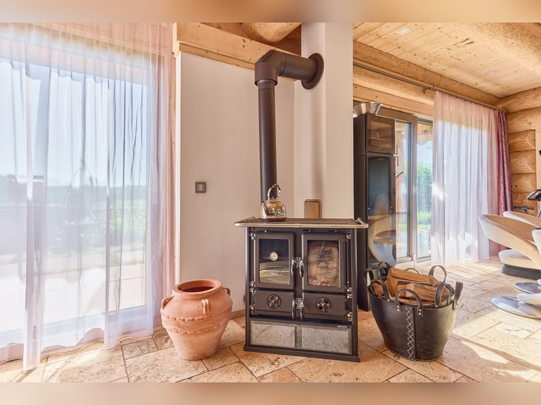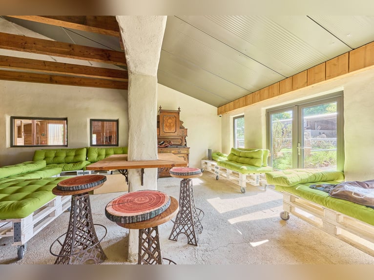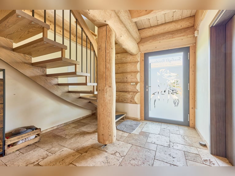 Equestrian Facility for Sale with a Luxurious and Sustainable Residential House and Development Plan! Property Description: This exceptional equine property in Hütschenhausen combines energy-efficient living, modern horsekeeping, and spacious outdoor areas on approximately 5.5 hectares of owned land. The timber-frame house, built in 2015, offers around 340 m² of living space divided into three units and is ideally suited for multi-generational living, live-work arrangements, or rental income. The high-quality timber construction, aluminum-wood windows with double glazing, heat pump, underfloor heating, wood stove, and ecological hemp-jute insulation ensure a sustainable and comfortable living environment. A large private garden complements the living area. The ground floor features a spacious main apartment, a smaller granny flat, and a practice room. The upper floor contains another large living unit with a kitchen, two bathrooms, and three bedrooms. For horsekeeping, a fully modernized open stable is available. The stable building, originally constructed in 1979 and renovated between 2017 and 2019, includes a walk-in stable with lying areas, an adjoining sand paddock, hay racks, two frost-free drinking troughs, and direct access to pasture. An extensive riding lounge with a small kitchen, saddle room, seminar space, and WC facilities creates ideal conditions for lessons or courses. Machinery shelters and an adjacent barn expand the utility area. The 20 × 40 meter riding arena and a lunging circle feature high-quality AS-ground footing. A large indoor storage hall allows for the storage of approximately 89 round bales (1.40 m diameter), which can be fed directly from the pasture via feeding gates. Additional features include a manure pit, camera surveillance, parking for trailers and cars, and a barn adjacent to the stable for machinery storage. A development plan with specific building regulations is available for review upon request. Equipment: Energy-efficient Timber House: - Year of construction: 2015 - Living area: approx. 340 m², 3 units - Usable area: approx. 441 m² - Heating: heat pump, underfloor heating, wood stove on ground floor - Construction: timber (log walls) - Windows: aluminum-wood double-glazed Layout of the Residential House: - Ground floor: large main apartment, smaller apartment on the left side, and practice room - Upper floor: one large living unit with kitchen, two bathrooms, three bedrooms Riding Arena: - Year of construction: 2018 - Dimensions: 20 × 40 meters - Base: 30 cm gravel, riding surface AS Ground Lunging Circle: - Year of construction: 2017 / 2018 - Diameter: 18 meters - Base: 30 cm gravel, riding surface AS Ground Horse Stable (Open Stable): - Year of construction: 1979 - Renovation: 2017–2019 - Walk-in stable with lying areas and directly adjoining paved sand paddock with hay racks and optional pasture access - Drinking troughs: 2 frost-free (indoor and outdoor) - Construction: solid (concrete) and wood - Roof: trapezoidal sheet with fleece lining - Large riding lounge with adjoining saddle room, small kitchen, seminar room or similar - WC facilities for clients - Heated riding lounge Total capacity: up to 25 horses Bale Storage Hall: - Storage for approximately 89 round bales (1.40 m diameter), with feeding gates allowing horses to access feed directly from the pasture - Floor: concrete - Roof: trapezoidal sheet with fleece lining Additional Features: - Manure pit - Camera surveillance - Trailer parking and car parking spaces - Barn adjacent to the stable for machinery storage A development plan with specific building regulations is available for review upon request. Location: Hütschenhausen is a well-connected municipality in the Western Palatinate district of Kaiserslautern, benefiting from its convenient location. The nearby A6 motorway (Bruchmühlbach-Miesau junction) provides quick access to the economically strong centers of Kaiserslautern, Homburg, and the entire Rhine-Neckar region. The A62 is also within immediate reach, offering direct connections to Trier and the Landstuhl motorway interchange. Proximity to Ramstein Air Base and the B423 ensures quick routes to workplaces and surrounding communities. Hütschenhausen offers a well-developed local infrastructure, making everyday life comfortable for families, professionals, and seniors. In the village and the districts of Katzenbach and Spesbach, there are various shops, bakeries, butcheries, small grocery stores, and service providers. Larger shopping centers, supermarkets, specialty stores, and diverse restaurants are just a few minutes away in Ramstein, Landstuhl, and Bruchmühlbach-Miesau. Modern daycare centers and a primary school are available locally, while secondary schools—Realschule plus, Gymnasium, and vocational schools—are accessible by bus in Ramstein, Landstuhl, and Kusel. Medical care is secured with general practitioners, pharmacies, specialists, dentists, and physiotherapists in the vicinity. Hospitals in Landstuhl, Kaiserslautern, and Homburg provide comprehensive inpatient care. The Landstuhl Regional Medical Center, one of the largest medical facilities in the region, is nearby. The area also offers attractive leisure and tourism opportunities, with scenic countryside ideal for cycling, hiking, and nature excursions. The local club life—whether sports, music, or culture—is vibrant and highly valued. Energy Certificate: Main Energy Source: Air-source heat pump (electricity mix) Demand Certificate Primary Energy Consumption: 25.2 kWh/(m²*a) Energy Efficiency Class: A+ Year of Construction (according to energy certificate): 2015 Further Information: Unauthorized access to the equestrian facility outside of viewings arranged through the authorized broker Fetter Immobilien is strictly prohibited by the owners. A commission of 3.57% of the purchase price including VAT applies upon notarization and is payable upon signing the notarized purchase agreement. A