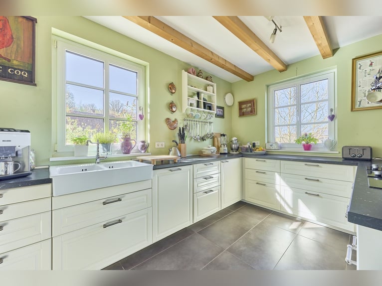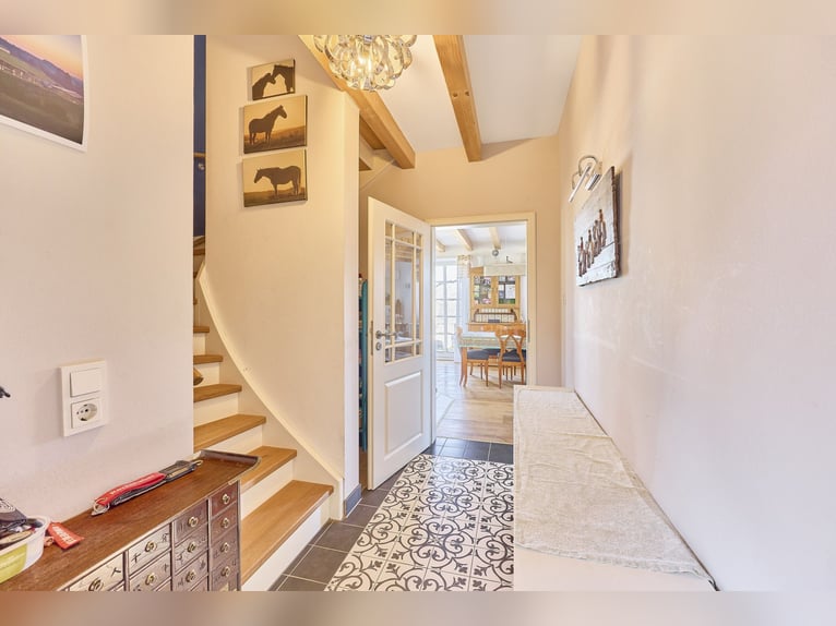 Equestrian Facility in Rhineland-Palatinate Featuring Award-Winning HIT Active Stable, Riding Arena, and Modern Country House! Property Description: This nearly new and thoughtfully designed equestrian estate located in the Donnersbergkreis district of Rhineland-Palatinate offers ideal conditions for horse-friendly living and working in a peaceful, natural setting. The centerpiece of the property is the approximately 6,000 m² HIT Active Stable, which was awarded 7 gold stars by the LAG in 2019. It provides optimal conditions for modern horsekeeping: with covered hay and water stations (heated), a spacious lying hall, sand lunging paddocks, barefoot path, and a continuously mud-free turnout with play and rest areas. Up to 30 horses live here in a mixed herd. For riders, the facility offers numerous well-thought-out amenities: a heated, alarm-secured tack room with a personal locker for each horse, a grooming area with wash bay and solarium, as well as a second outdoor shower, ensuring comfort in daily routines. A cozy rider’s lounge with a kitchenette, fireplace, reading corner, and a sun terrace overlooking the estate invites relaxation or can be used for seminars! Training options include a bright, airy indoor riding arena (dimensions: 20 x 40 m) built in 2022 and a renovated round pen (diameter: 19 m) from 2023. Directly adjacent begins a spacious trail riding area at the edge of the Palatinate Forest, with varied routes suitable for beginners and advanced riders. The entire property spans an impressive 66,409 m² of owned land. Additional leased areas complement the operation perfectly and offer extra flexibility, especially for pasture management. Included in the offering is a modern and efficient single-family home in country house style, built in 2016. It impresses with contemporary architecture, high-quality furnishings, and a cozy living atmosphere—ideal as a private residence or as a main home for the estate operators. Features: Residential House: - Year of construction: 2016 - Kitchen: Country house kitchen from 2016, induction cooktop and gas hob - Heating: Gas condensing boiler, solar thermal system for hot water, underfloor heating, additional fireplace stove - Construction: Timber frame, low-energy house KfW 70 - Windows: Triple-glazed, plastic, sash windows - Flooring: Parquet and tiles - Basement: Not basemented - Garden with sun terrace and covered lounge area - Car parking spaces on the property HIT Active Stable: - Awarded 7 gold stars by the LAG in 2019! - Year of construction: 2016 - Turnout area for horses: approx. 5,600 m² - Number of horses: 30 (including 5 paddock boxes for integration) - Fodder automatic feeder, selection gates, adjacent pasture, multiple covered water and hay stations (heated, with tap water) - Spacious lying hall with adjoining covered manure pad - Several sand lunging arenas, barefoot path with different ground surfaces - Approximately 650 meters of trail riding routes Indoor Riding Arena: - Built in 2022, panoramic design - Riding surface: 20 x 40 meters - Flooring: North Sea sand mixture - Manufacturer: Hörmann (glulam beams, steel) - Sprinkler system available Farm Buildings: - Built in 2016 - Tack room (security door WK 2 with electric lock cylinder) - Covered indoor & outdoor grooming areas and wash bay (hot water) - Large rider’s lounge / seminar room with kitchen and WC, technical room, ceiling storage, feed room Guest Horse Area (beside riding arena): - Built in 2016 - 4 paddock boxes, currently used as an open stable (but originally designed as a separate stable unit with its own tack room) - Ideal for guest horses during training sessions or as a rehabilitation area - Paved open stable area with hay rack Lunge Circle: - Built in 2023 - Diameter: 19 meters - Surface: Wood chips and sand mixture Round Hall: - Built in 2016 - Area: 250 m² / space for approximately 342 round bales - Gravel surface, closed on three sides - Tent hall Additional & Lease Areas: - Salt inhalation tent for 2 horses - Horse blanket dryer - Approximately 1 hectare of leased pasture Location: The equestrian estate is situated in the western part of the Donnersbergkreis district in Rhineland-Palatinate (Wartenberg-Rohrbach), embedded in a natural environment with excellent infrastructural connections. The nearest A63 motorway exit is just a few minutes away, providing quick access to Mainz, Kaiserslautern, and the A6. The nearby train station, connected to the Kaiserslautern–Bad Kreuznach line, ensures good accessibility by train. The area is characterized by an active, well-connected community life. Despite its modest size, the region offers diverse club activities, cultural events, and strong volunteer engagement. From sports clubs and village festivals to seasonal markets—the social fabric is lively and family-oriented. The scenic location in the North Palatinate Mountain Range invites outdoor activities such as hiking, riding, and cycling, offering relaxation right at your doorstep. Close proximity to Kaiserslautern (about 15 minutes by car) combines rural living with urban amenities—including shopping, medical care, cultural offerings, universities, and colleges. For families, the area is particularly attractive: within walking distance are kindergartens, and well-connected primary and secondary schools are nearby. Daily life can be easily managed by car or public transport. Overall, this location offers a harmonious blend of peaceful, natural surroundings, excellent transport links, and a vibrant social environment—ideal for those who enjoy country living while remaining close to urban centers. The exact address will be provided with the exposé. Energy Certificate: Main energy source: Gas, solar thermal Energy consumption certificate End energy demand: 61.91 kWh/(m²*a) Energy efficiency class: B Construction year according to energy certificate: 2016 Additional Information: Unauthorized access to the equestrian estate outside of viewings
