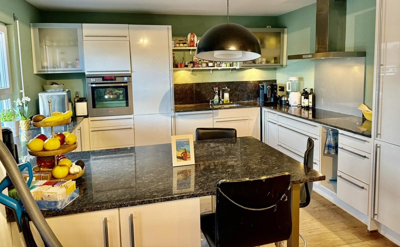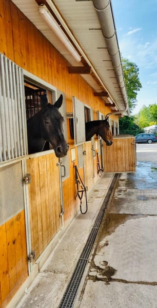 TE KOOP!!!! Onderhoudsrijke paardenaccommodatie met een mooi buitenrijgebied, gelegen in een idyllische omgeving nabij de Rijn, direct aan de grens met Zwitserland, met meerdere woonunits en een restaurant. Stallen met een rijhal (inclusief tribune) van 20x40 m, nieuwe Greensan-bodem met sproei-installatie, 35 boxen en 12 uitloopboxen, 2 zonnebanken, 2 wasboxen, 2 voersilo's, een rijbaan voor 4 paarden, een loopband. Buitenbak van 65x75 m met groene zandbodem en sproei-installatie. ! Mogelijkheid tot overname van pensionpaarden! Charmant en licht hoofdgebouw met uitzicht op de rijhal, 109 m² met hoogwaardige afwerking, airconditioning, parketvloer en sauna, plus een bijgebouw met woonruimte van 43 m². Daarnaast een recent gerenoveerde tweede woning van 55 m². Twee personeelskamers, restaurant met 50 zitplaatsen, werkplaats, grote tuinloods, zes grote en drie kleine weilanden (gepacht). Winstgevende zonnepaneleninstallatie van 225,95 kW.