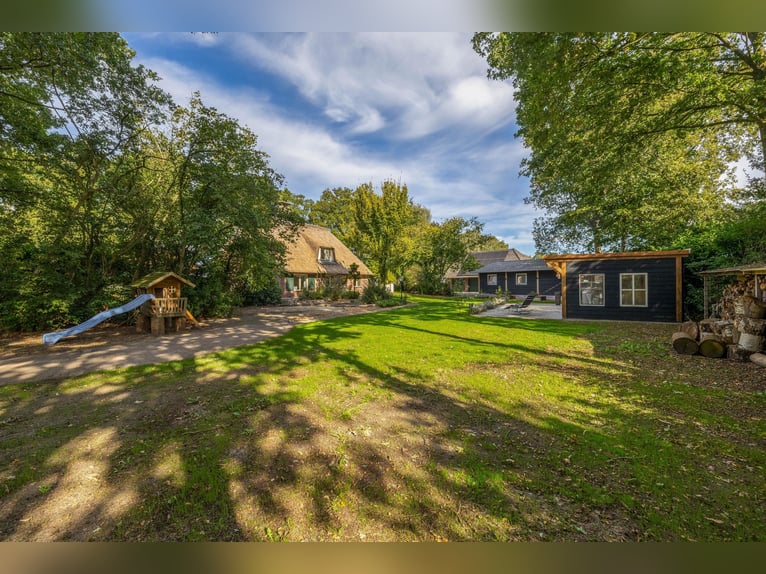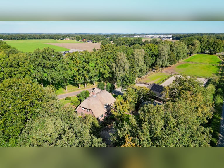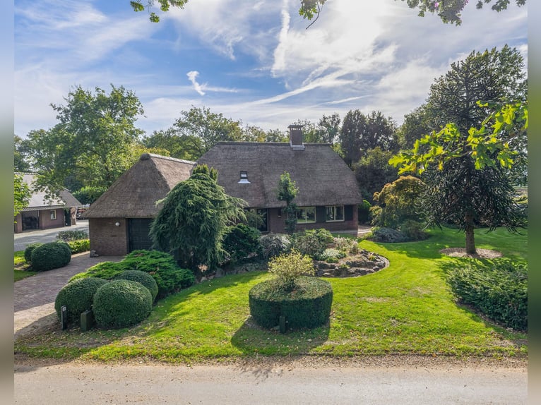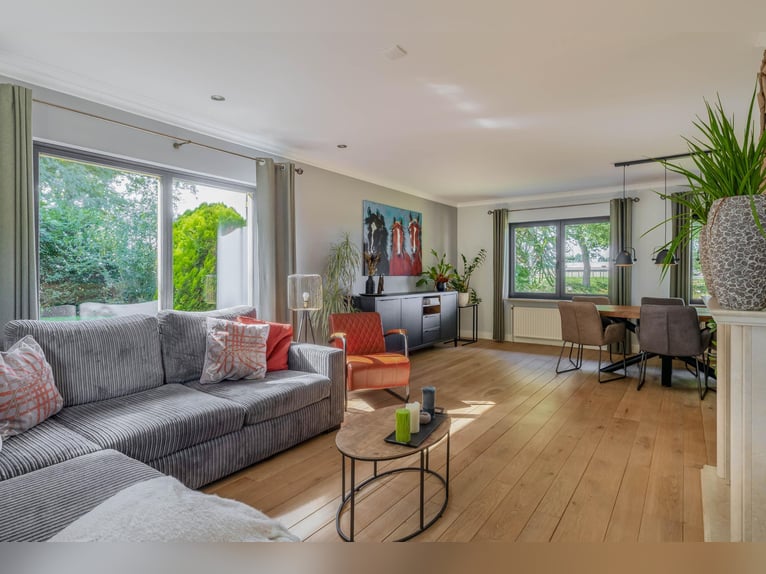 Dieses gepflegte freistehende Haus mit integrierter Garage ist ausgestattet mit zwei Schlafzimmern und einem Badezimmer im Erdgeschoss. Das erste Obergeschoss verfügt über drei weitere Schlafzimmer, ein Badezimmer und einen Abstellraum. Das Anwesen wird ergänzt durch eine separate Doppelgarage. Ein Pferdestall mit zwei Boxen, eine Außenreitbahn, eine Longiercircle und Weideland bieten zahlreiche Möglichkeiten für den Hobby-Pferdehalter! Objekt mit vielfältigen Nutzungsmöglichkeiten! Wunderschönes, mit Schilf gedecktes Landhaus im eleganten Landhausstil, umgeben von einem gepflegten, privaten Garten. Das Haus verfügt über eine innenliegende Garage sowie hinter dem Gebäude eine Doppelgarage mit Abstellraum und Dachboden, die vielseitig nutzbar ist. Zudem gibt es einen kürzlich errichteten Pferdestall mit zwei großzügigen Boxen, einer Wasch- und Spülfläche, einer Reitbahn und einem Longierkreis, beide mit Eb- und Flutboden. Das Anwesen ist auf einem ca. 10.680 m² großen Grundstück äußerst schön gelegen im Außenbereich von Lemelerveld, nur eine kurze Entfernung zu allen Annehmlichkeiten, die dieses lebendige Dorf bietet. Auch die beeindruckende Natur des Sallandse Heuvelrug mit Wäldern und Heidelandschaften sowie der Lemelerberg sind in kurzer Zeit erreichbar. Städte wie Deventer und Zwolle, bekannt für ihre Kultur und Geschichte, sind gut erreichbar, ebenso das nahegelegene touristische Städtchen Ommen. **Wohnhaus** **Erdgeschoss:** Der Eingangsbereich mit Garderobe führt in das Wohnzimmer, die Toilette, die Küche, die beiden Schlafzimmer, das Badezimmer und die innenliegende Garage. Eine schöne Massivholztreppe gewährt Zugang zum ersten Obergeschoss. Das gemütliche Wohnzimmer verfügt über große Fenster, die viel natürliches Licht spenden und einen schönen Blick auf den Garten bieten. Eine Klimaanlage sorgt für angenehme Temperaturen, während ein Gaskamin mit Schornstein für zusätzliche Atmosphäre und Wärme sorgt. Die Landhausküche ist in einer Wandaufstellung gestaltet und mit verschiedenen Einbaugeräten sowie einer Naturstein-Arbeitsplatte ausgestattet. Es gibt ausreichend Platz für einen Essbereich. Die Küche und die Diele sind mit einem Schieferboden versehen. Ein praktischer Hauswirtschaftsraum bietet Anschlüsse für Waschmaschine und Trockner sowie einen Einbauschrank. Eine Tür führt in den Garten. Von der Diele aus ist das Elternschlafzimmer erreichbar, das mit einem praktischen Einbauschrank ausgestattet ist. Angrenzend befindet sich ein komplettes en-suite Badezimmer mit Badewanne, Dusche, Waschbecken und Fußbodenheizung. Neben diesem Schlafzimmer liegt das zweite Schlafzimmer. Die großzügige, innenliegende Garage verfügt über eine Seitentür und ein elektrisch betriebenes Garagentor. Die Garage ist ebenfalls beheizt. **Obergeschoss:** Der Flur bietet Zugang zu drei Schlafzimmern, einem Abstellraum und einem zweiten Badezimmer. Das Badezimmer ist mit Dusche, Wand-WC, Waschbecken und einem Designheizkörper ausgestattet. Der Abstellraum beherbergt die Anlage für die Zentralheizung. **Garten, Hof und Nebengebäude** **Nebengebäude:** Große, freistehende Doppelgarage in traditioneller Bauweise, mit zweischaligem Mauerwerk, Stahlträgern und mit Dachziegeln gedeckt. Die Garage verfügt über einen Betonboden, ein elektrisch betriebenes Tor, Strom, Wasser und Starkstrom. Über der Garage befindet sich ein Dachboden. Das Dach ist mit 18 Solarpanelen ausgestattet. Der Pferdestall ist mit zwei großzügigen Boxen und einer Wasch- und Spülfläche ausgestattet, wobei die Boxen mit Außenklappen versehen sind. **Garten & Hof:** Rund um das Haus erstreckt sich ein schön gestalteter, gepflegter Garten mit Rasenflächen, Beeten und verschiedenen Obstbäumen. **Weitere Einrichtungen:** Der Hof ist außerdem mit einer Außenreitbahn und einem Longierkreis ausgestattet, beide eingezäunt mit Holz. Hinter der Garage befindet sich ein Weideland, ebenfalls mit einem Holzzaun eingezäunt. **Bebauungsplan:** An der Stelle des Hauses, der weiteren Gebäude und des Hofes besteht die Nutzungsart „Wohnen“. Das angrenzende Weideland ist landwirtschaftlich genutzt. **Besonderheiten:** – Baujahr: 1987 – Grundstücksfläche: 10.680 m² – Volumen ca. 854 m³ – Wohnfläche: ca. 208 m² – Außenlagerfläche: ca. 154 m² – Dämmung von Boden und Wänden sowie Doppelverglasung – Fußbodenheizung als Zusatzheizung in Küche, Hauswirtschaftsraum, Flur und Badezimmer im Erdgeschoss – Zwei Schlafzimmer und ein Badezimmer im Erdgeschoss – Energieausweis: Kategorie C – Vorhandenes Videosystem (5 Kameras mit Recorder)