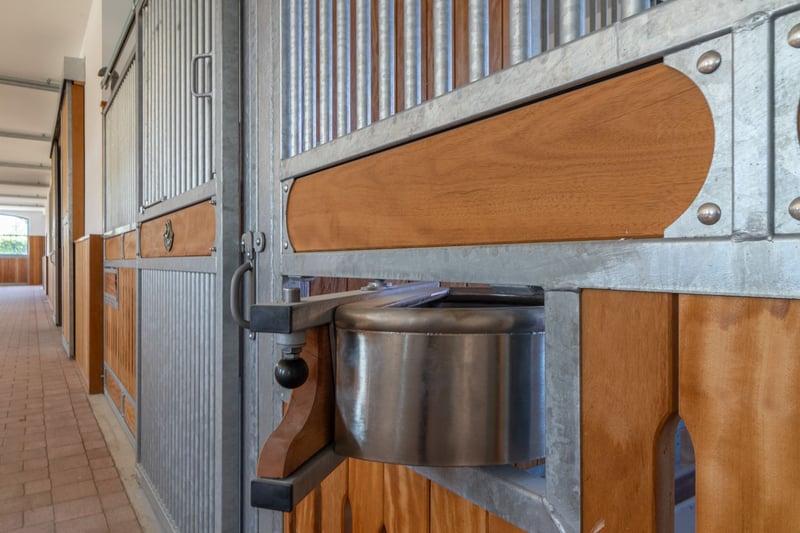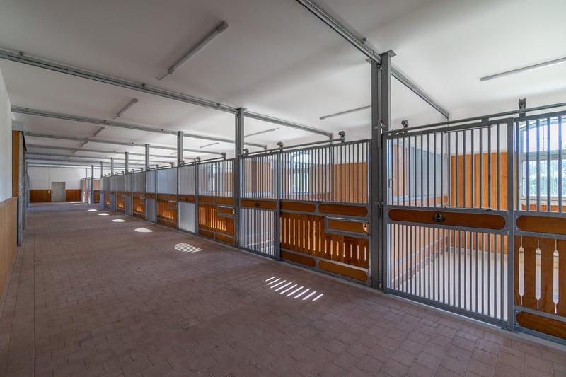 Dans un emplacement de rêve absolu, à seulement environ 40 minutes de Munich, se trouve ce domaine magnifique, entouré de prairies, de forêts et de lacs, dans la belle région pré-alpine de Bavière. Dans un cadre parfait et en totale solitude, le domaine invite à une vie privée sur un magnifique haras. Trônant au-dessus du terrain, avec vue sur ses propres pâturages, se trouve la spectaculaire villa, qui constitue la résidence privée sur le site. Avec beaucoup d'amour pour le détail, la villa a été soigneusement rénovée et brille maintenant de tout son éclat dans une combinaison de tradition et de modernité. Avec une surface habitable d'environ 568 m², un environnement de vie impressionnant a été créé pour une première occupation, qui est particulièrement unique grâce aux perspectives récurrentes sur le vert environnant. Le point central de l'ensemble est la vaste cour à trois côtés avec de grandes boxes et une carrière inondée de lumière. La ferme offre des conditions idéales pour un élevage de chevaux professionnel et réussi. La combinaison d'écuries spacieuses, de pâturages étendus et d'installations modernes crée un environnement optimal pour un élevage de chevaux sain. Deux carrières, un abri ouvert, une machine à longer et les carrières et paddocks en sable préparés établissent des normes professionnelles de la plus haute qualité. _ Surface habitable d'environ 1.428 m², surface habitable / utile d'environ 2.655 m² _ Terrain d'environ 28 ha _ Tous les bâtiments annexes tels que maisons pour le personnel, bâtiments d'exploitation, un abri ouvert et une machine à longer pour chevaux _ 72 boxes, deux carrières et deux carrières préparées _ Droit de construire une autre villa également dans un emplacement spectaculaire En cas de conclusion d'un contrat de vente pour le bien mentionné ci-dessus, une commission d'acheteur de 3,57 % y compris 19 % de TVA légale sur le prix d'achat notarié sera due. Dans le cadre des §§ 656a et suivants du BGB, le montant de la commission d'acheteur est toutefois limité par la commission à verser par le vendeur. Le paiement de la commission sera réglé dans le contrat de vente.