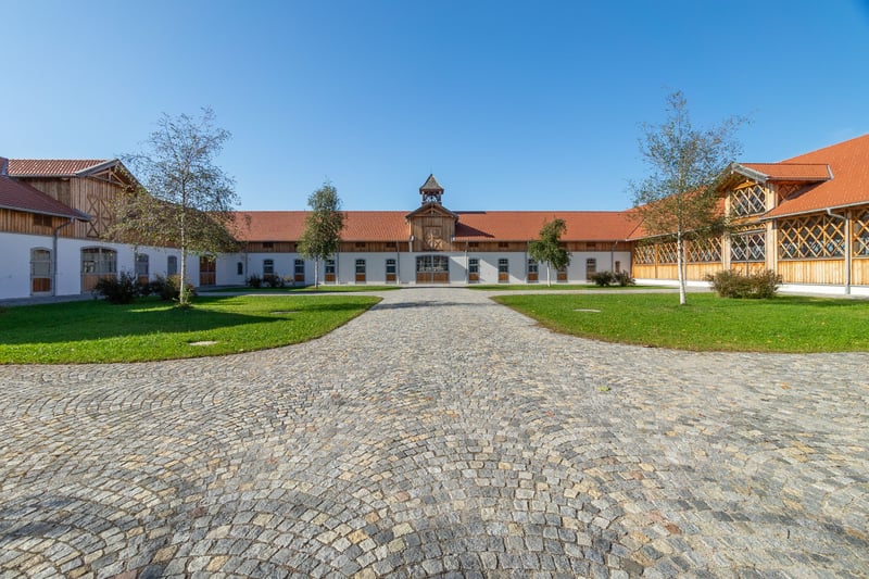 Położona w absolut wymarzonej lokalizacji, zaledwie około 40 minut od Monachium, w przepięknym bawarskim przedgórzu alpejskim, posiadłość otoczona jest łąkami, lasami i jeziorami. W idealnej scenerii i w pełnej prywatności, ta posiadłość zaprasza do zamieszkania na własnym, urokliwym folwarku. Dominującą nad terenami znajduje się, z widokiem na własne pastwiska, spektakularna willa, która stanowi prywatną rezydencję na terenie posiadłości. Z dużą dbałością o szczegóły, willa została starannie odrestaurowana i teraz lśni pełnym blaskiem, łącząc tradycję z nowoczesnością. Z powierzchnią użytkową około 568 m², powstała tu imponująca przestrzeń mieszkalna, gotowa do pierwszego zamieszkania, która dzięki powtarzającym się osiom widokowym na otaczającą zieleń jest szczególnie unikalna. Centralnym punktem obiektu jest rozległy, trójstronny dziedziniec z dużymi boksami i jasną, dobrze doświetloną ujeżdżalnią. Teren ten oferuje idealne warunki do profesjonalnej i udanej hodowli koni. Połączenie przestronnych stajni, rozległych pastwisk i nowoczesnych udogodnień zapewnia optymalne środowisko dla zdrowej hodowli koni. Dwie ujeżdżalnie, padok, hala treningowa, przygotowane place do jazdy i piaskowe paddoki spełniają najwyższe standardy jakości. - Powierzchnia mieszkalna około 1 428 m², powierzchnia użytkowa około 2 655 m² - Działka o powierzchni około 28 ha - Wszystkie budynki gospodarcze, w tym domy dla pracowników, budynki operacyjne, padok i urządzenia do prowadzenia koni - 72 boksy, dwie ujeżdżalnie i dwa przygotowane place do jazdy - Zezwolenie na budowę kolejnej willi w równie spektakularnej lokalizacji W przypadku zawarcia umowy kupna powyższej nieruchomości, nabywca zobowiązany jest uiścić prowizję w wysokości 3,57% od ceny zakupu brutto, w tym 19% podatku VAT, zgodnie z notarialnie potwierdzoną umową. W zakresie przepisów §§ 656a i następnych BGB, wysokość prowizji dla nabywcy jest ograniczona przez prowizję, którą zobowiązany jest zapłacić sprzedawca. Opłata prowizyjna jest regulowana w umowie kupna.