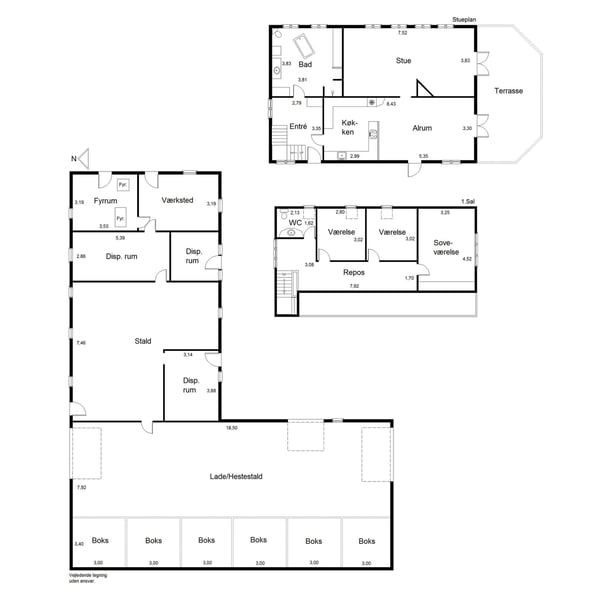 This property is the ideal home for you if you want to live in close connection with nature and desire plenty of space around you. The conditions for keeping horses here are optimal. The farm dates back to 1929 and has been thoroughly renovated both inside and out over the last twenty years. The last renovation was completed in 2024. There is no backlog of renovations. The residential house, designed in the Morten Korch style, features a spacious living area on the ground floor, where a large living room is open to an equally large kitchen. Both the living room and the kitchen have access to the south-facing terrace, making the transition between the indoor and outdoor areas nearly seamless. From here, you can also access the fully fenced garden, which includes a beautiful greenhouse, a flower bed, and a generous lawn area. On the ground floor, there is also the lovely bathroom of the house, providing ample space for daily showers and a relaxing bath. The upper floor contains the quieter and more private rooms, including a larger bedroom, two additional rooms, and a toilet. The two outbuildings offer six stalls for the horses and plenty of additional space, as well as an attic. Furthermore, there are rooms of various sizes and a heating room for the pellet/solid fuel heating system. The large property features stylishly fenced horse pastures, a park-like forest with approximately 1,000 meters of beautiful paths for relaxed walks and small rides, and a small forest lake. Additionally, there are 5 paddocks for the horses, including 2 winter paddocks with drained ground, as well as a riding arena measuring approximately 20 x 40 meters with sand footing and drainage, making it an ideal training location. The surrounding area is also well-suited for riding out. About 5 km away is the Aalestrup Riding Club, which has two large riding halls that members can use at a reduced rate. Living area of the house: 152 sqm Land area: 83,819 sqm (of which pasture approx. 5 ha, forest approx. 2 ha)