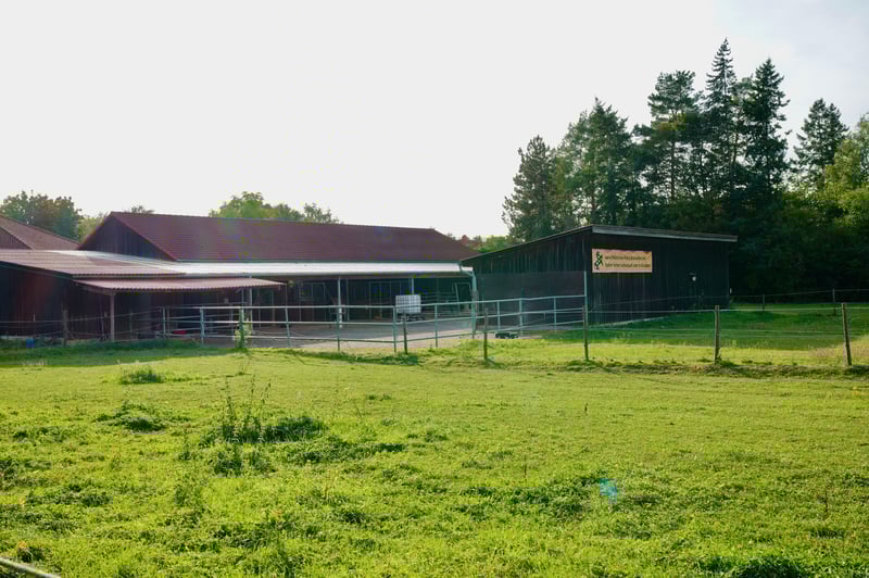 Kleine Reitanlage zu verkaufen Aus gesundheitlichen Gründen suche ich für meine kleine Reitanlage mit neuwertigem Wohnhaus provisionsfrei einen neuen Eigentümer. Lage: Zwischen Frankfurt und Nürnberg in 97350 Mainbernheim (Ortsrandlage) – verkehrsgünstig zwischen A7 und A3 bei Kitzingen/Würzburg gelegen. Größe Reitanlage: Insgesamt 1,7 ha Eigenland, Heugewinnung auf eigenen Wiesen. Die Unterbringung von bis zu 25 Pferden ist möglich, aufgeteilt in großen Offenstall mit befestigtem Boden, 11 Futterständen und 2 einzelnen Boxen. Extra Boxenstall mit 5 Boxen jeweils mit Paddock zur Einzelhaltung. Sandplatz mit Flutlicht und Beregnung – 20 x 40 m, Rasenplatz 50x70m, Geländetrainingsplatz 70x90 für Trail oder Vielseitigkeit. Rundhalle mit 19 m Durchmesser 2 Heuscheunen, Werkstatt, Pflegerzimmer, Büro, WC mit Dusche, Sattelkammer. Große Koppeln mit 2 Weidezelten, kleinere Koppeln mit direktem Zugang vom Stall. Wohnhaus: Einfamilienhaus, Baujahr 2019, KFW 55 – von der großen Terrasse mit Blick zum Stall. 3 Schlafzimmer, großes Bad im 1.OG – im EG Wohnbereich m. offener Küche, Gäste WC, Terrasse. Mit eigenem Eingang: Gästeappartement mit Bad, das extra vermietet werden kann. Garage mit zusätzlichen 3 Stellplätzen, Garten pflegeleicht angelegt, Weg zum Stall gekiest. Nutzung: Aktuell wird die Anlage als Reitschule, Verkaufsstall und Seminarzentrum genutzt, ist aber hervorragend auch für die Zucht geeignet – oder komplett privat für Pferdehalter. Mehr Info bitte nur telefonisch bei Petra Kronwitter 0171-7381286