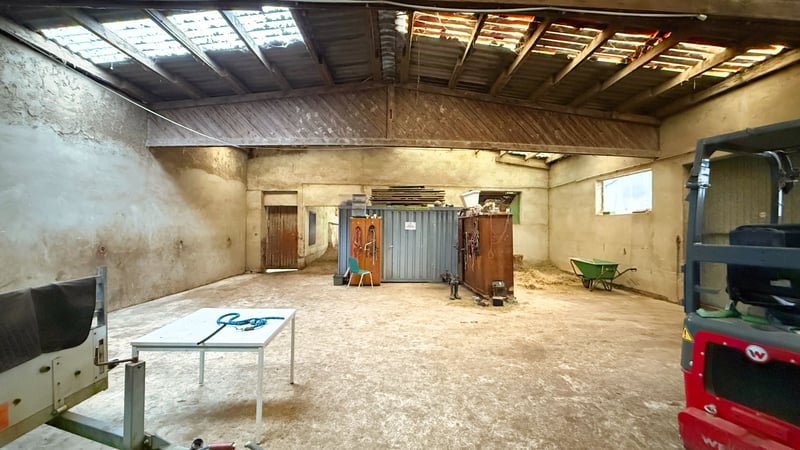 Property Description The property offered is a spacious former farmstead built in 1903, featuring extensive stables and outbuildings, as well as an indoor riding arena, all situated on a contiguous plot of approximately 4,260 m² in Linnich. The residential building, located at the street frontage, has a living area of about 160 m² spread over two floors, including a basement, and comprises a total of seven rooms. It is currently inhabited by the owners and, together with the rear farm buildings, forms a traditional courtyard with a classic rural character. The generously sized living room features a fireplace, creating a cozy living atmosphere and highlighting the rural charm of the house. Modernizations of the residential building: - Replacement of the gas heating system in 2021 - Installation of a welded wire fence in 2020 Equestrian Facilities & Stables The property offers a solid infrastructure for horsekeeping: - Indoor riding arena measuring approximately 20 x 40 meters - Outdoor riding arena approximately 30 x 50 meters (leased) - About 25 horse stalls/stable places - Several stable sections - Open stable areas - Turnout and outdoor paddocks - Paved courtyard areas Additionally, there are a workshop, garages, and ample parking spaces available. Flexible Usage & Rental Potential Depending on the concept, there are options to: - Rent out the main house separately, - Rent the horse stalls (up to 25 options) individually or as a whole, - Or combine residential living with a horse operation economically. This creates, beyond personal use, attractive income potential in the area of boarding horses or residential rentals (subject to official permits and individual contractual arrangements). Land & Lease Areas The freehold property covers approximately 4,260 m² and forms a contiguous courtyard and utility area. Furthermore, around 4 hectares of meadows directly adjacent to the farm are leased. The transfer or continuation of the lease agreement will be arranged with the respective lessor. The immediately neighboring meadow areas provide ideal conditions for close-to-field, species-appropriate horsekeeping with short travel distances. Condition & Development Potential The buildings are generally in a condition appropriate for their age. Modernization and, if necessary, renovation measures are required depending on the planned use. Particularly for commercial use or operational development, investments should be considered in the following areas: - Energy optimization of the residential building - Modernization of stable and hall technology - Adaptation of the riding facilities to current standards - Building law review for change of use The estate thus offers interesting and versatile development potential for both self-users and investors. The information contained in this exposé is based on details provided by the owner. It serves solely for non-binding preliminary information and does not constitute a legally binding basis. No guarantee is given for the accuracy, completeness, or timeliness of the information. The offered property is subject to a commission of 3.57% of the purchase price, including VAT, payable by the buyer.