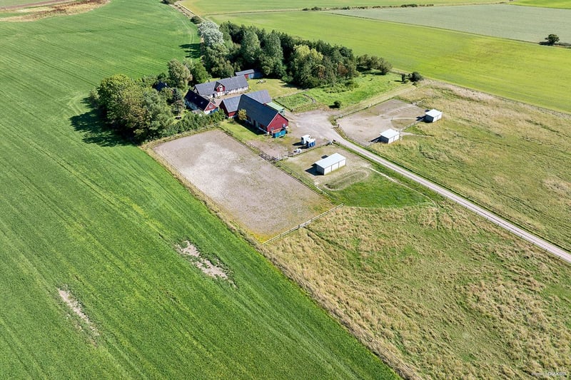 Charming residence with a spacious stable – perfect for entrepreneurship and equestrian life. A Rare Opportunity to Acquire a Complete Equestrian Property! This property offers a unique opportunity to acquire a fully equipped equestrian estate, featuring two residential homes, a modern stable building, a cozy guest cottage, and generous spaces for both humans and animals. With its beautiful farmyard, unique location in scenic surroundings, and thoughtful design, this estate is perfect for those seeking a lifestyle home where both living and equestrian pursuits are central. Not only does this property offer fantastic accommodations and equestrian facilities, but it also presents excellent opportunities for those looking to combine country living with a profitable business venture. With multiple residential buildings and a separate guest cottage, there are great possibilities for a Bed & Breakfast operation. For entrepreneurs, there is also potential to open a shop, farm store, or run a business in equine tourism, events, or workshops – the possibilities are only limited by your imagination. The beautiful garden, nature-based surroundings, and the authentic feel of the property create an experience that attracts both Swedish and international visitors. The estate is located in a popular area that, during the summer months, is a favorite destination, offering easy access to nature reserves, riding trails, the coast, and charming villages with cafés, farm shops, and artist studios. Its strategic location allows visitors to easily reach the estate by car and explore the region's rich offerings of nature and culture. This is truly a place where home, equestrian life, and business opportunities come together in an environment many dream of experiencing. Everyday Services: Despite the countryside setting, everyday services such as grocery stores, florists, veterinary clinics, pizzerias, and libraries are nearby. In summer, the harbor comes to life with restaurants and activities. Vejbystrand - Sea: 3.9 km Hjärnarp (Shops & Services): 9.9 km Torekov: 20 km Båstad: 15 km Helsingborg: 41 km Laholm: 38 km Ängelholm Airport: 12 km Copenhagen (Kastrup): 130 km A Place for Horses and Dogs to Live in Harmony – A Farm Where Every Detail is Designed with Care Welcome to an equestrian estate created to provide both humans and animals with the best of countryside tranquility and equestrian quality of life. Here, you are greeted by a warm and thoughtful environment where every detail in the stable and surroundings has been carefully planned for function, comfort, and enjoyment – catering to all horse breeds and disciplines. The generous and spacious stable features six bright stalls, ranging in size from 9.5 sqm to 13.5 sqm, all with impressive ceiling heights extending to the roof ridge. There is ample room for both movement and rest, providing the horses with a safe and calm space to reside in. The grooming areas are well-equipped with tying places, a farrier station, and a separate grooming stall – all designed to make daily care of the horses as simple and safe as possible. The stable is connected to a large barn offering generous storage space for feed, hay, and silage – easily accessible and functional for efficient stable management. Practical gates lead directly to the courtyard and further on to the pastures and paddock, making the daily routine smooth and time-efficient. A separate shed houses a well-equipped tack room with water, storage, and a changing room. For horses that thrive in freedom, there are two free-range paddocks with attached loose housing, where the animals can roam freely and enjoy the rhythm of nature. The riding opportunities are exceptional: a private trail meanders through the own woodland and out into open fields, with plenty of gravel roads in the area for varied rides. For those wishing to take a longer ride, the sea is just about 4 kilometers away – perfect for a relaxing ride with a refreshing sea breeze in the air. For those with dogs or breeding activities, a large and spacious dog run is available, with direct access to the stable via a practical hatch – a smart solution that simplifies daily routines and creates a safe and flexible environment for your four-legged friends. This is a farm for those who want to provide their horses with a home filled with care, peace, and freedom of movement – where both horses, dogs, and dreams have room to grow.